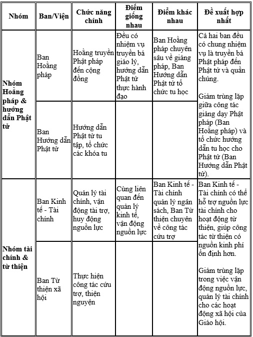 Hợp nhất Ban Hoằng pháp + Ban Hướng dẫn Phật tử: Đều có chức năng hướng dẫn, hoằng truyền giáo lý.