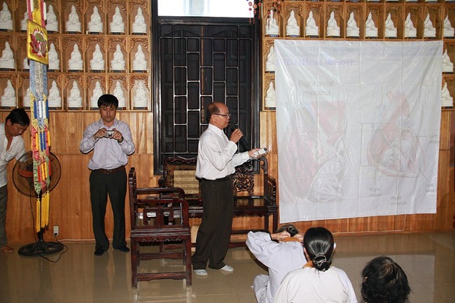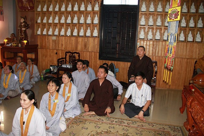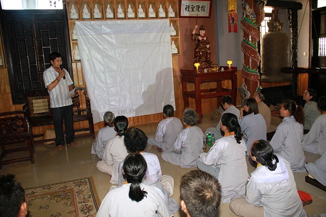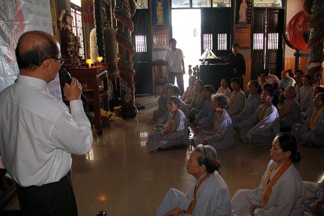 GS.TS Hồng Quang nói chuyện với Phật tử chùa Nguyên Ngộ
