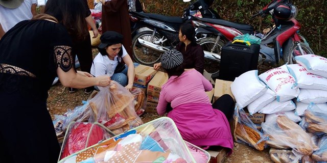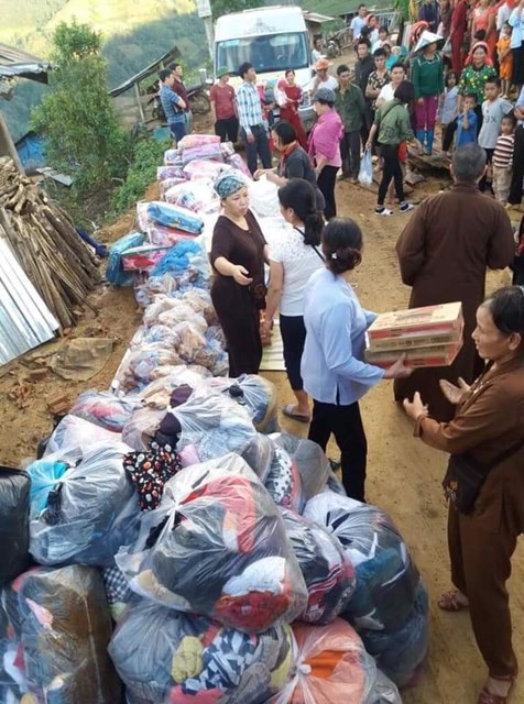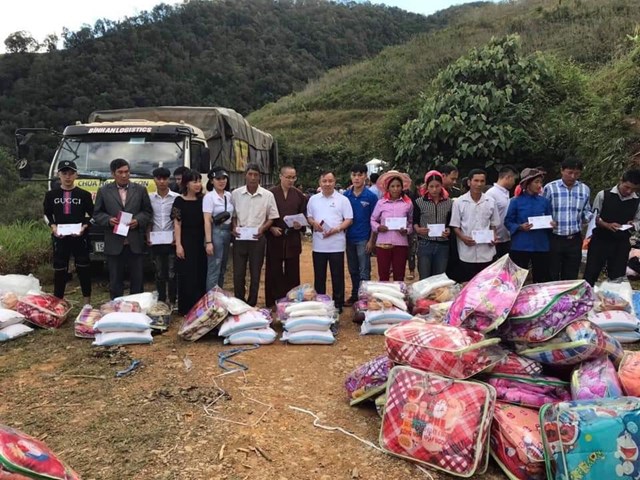 Tại các bản Là Si, Lè Giàng, Ló Mé, xã Tá Bạ; bản Ka Lăng, bản Là Ú Cò,  xã Ka Lăng và bản Nậm Xả, xã Bum Tở, huyện Mường Tè, đoàn từ thiện chùa Hang đã phối hợp cùng Ban chấp hành huyện đoàn huyện Mường Tè, chiến sỹ biên phòng Ka Lăng và cán bộ các xã Tá Bạ, xã Ka Lăng phát 500 phần quà cho bà con bao gồm: 500 chiếc chăn ấm, 500 chiếc màn đôi, 500 thùng mì tôm, 500 chiếc bánh chưng, 500 chiếc bánh nướng, 1200 chiếc bánh mì, 4 tấn gạo và 50 triệu đồng tiền mặt, cùng với một số đồ chơi, quần áo cũ còn sử dụng được…