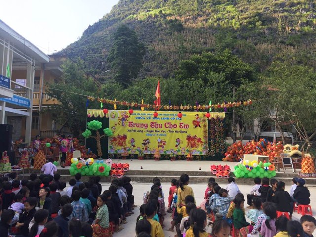 Nhân dịp này, đại diện cán bộ lãnh đạo báo Hà Giang, cán bộ xã Pải Lủng, huyện Mèo Vạc đã gửi lời tri ân tới Ni Sư trụ trì chùa Vẽ cũng như các nhà hảo tâm, các mạnh thường quân, các Phật tử của chùa Vẽ đã tới vùng cao Hà Giang để tặng quà cho bà con và tổ chức một cái tết trung thu đầy ý nghĩa cho các cháu ở điểm trường xã Pải Lủng.