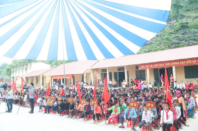 Vượt qua chặng đường hơn 500Km với hơn 15 giờ đồng hồ ngồi trên xe ô tô, đoàn chúng tôi mới tới được xã Pải Lủng, huyện Mèo Vạc, tỉnh Hà Giang. Theo kế hoạch của đoàn, sáng ngày 3/9/2016, đoàn từ thiện đã tham dự buổi lễ khai giảng năm học mới 2016 – 2017 của các em đang học tập tại điểm trường xã Pải Lủng, huyện Mèo Vạc, tỉnh Hà Giang.