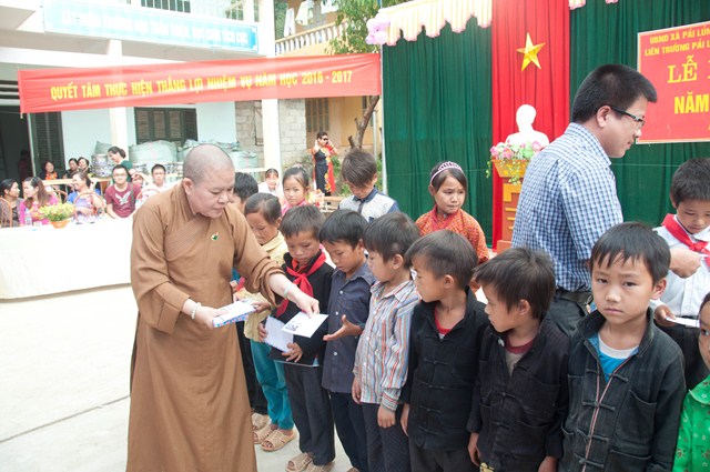 Tham dự buổi lễ khai giảng năm học mới 2016 – 2017 có Ni Sư: Thích Tâm Chính – Trưởng Ban từ thiện xã hội GHPGVN thành phố Hải Phòng, chư tôn đức Ni chùa Vẽ, cùng đông đảo các Phật tử, các nhà hảo tâm, các mạnh thường quân và các em học sinh 3 cấp thuộc xã Pải Lủng.
