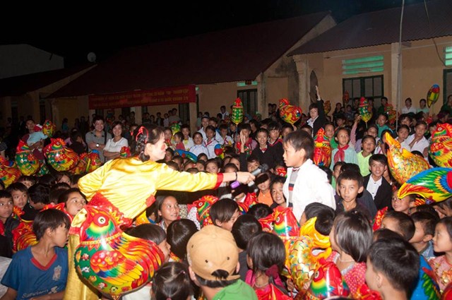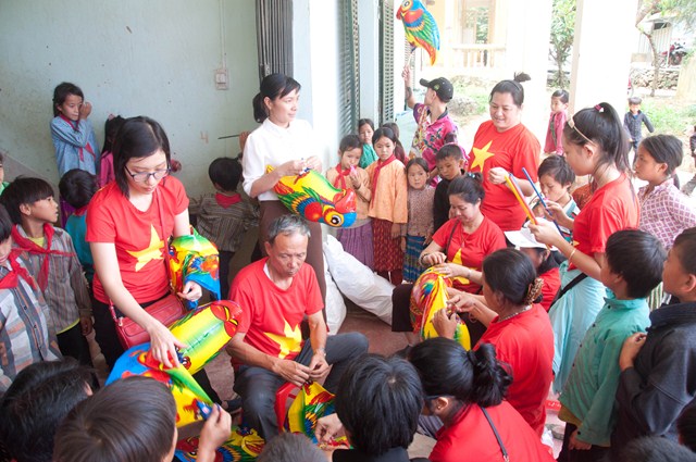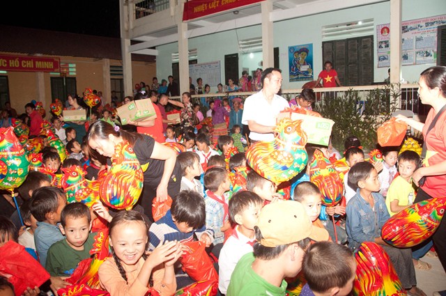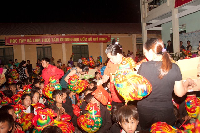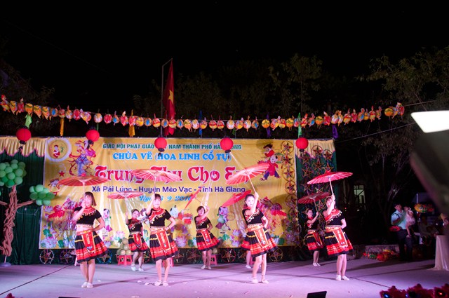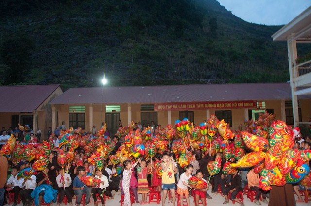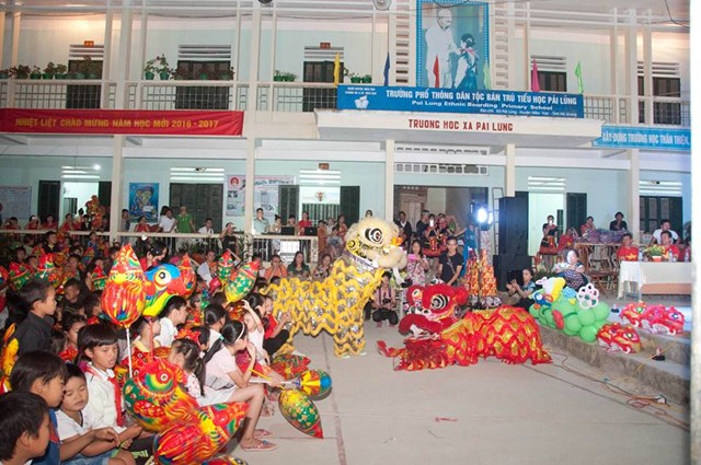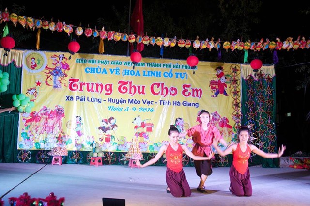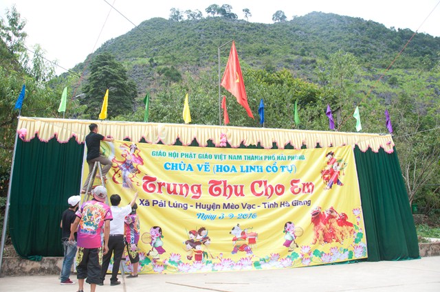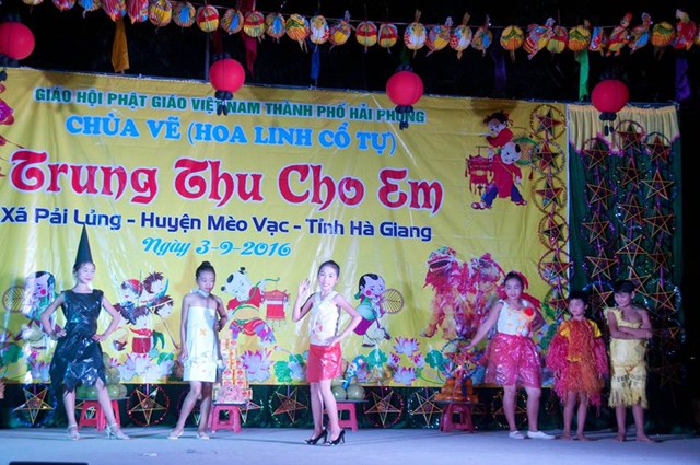 Ngoài việc quan tâm đến đời sống vật chất thì đôi khi chúng ta cần phải quan tâm đến đời sống tinh thần của bà con vùng cao, bởi đời sống tinh thần cũng đóng một vai trò hết sức quan trọng trong cuộc sống thường ngày. Chính vì lẽ đó, lần này đoàn từ thiện chùa Vẽ đã quyết định mời đoàn múa lân, các văn nghệ sỹ, ca sỹ, diễn viên của thành phố Hải Phòng, thủ đô Hà Nội phát tâm cúng dàng tổ chức đêm văn nghệ “ Trung Thu Cho Em” dành cho các em nhỏ vùng cao nhân dịp tết trung thu Bính Thân – 2016 đang gần kề. Có lẽ đây là lần đầu tiên các em nhỏ tại đây được tham dự một chương trình trung thu hoành tráng, quy mô và ý nghĩa như vậy, với các tiết mục: Múa Lân của đội múa Lân Sư Đường, tiết mục múa rối của đoàn múa rối Hải Phòng, tiết mục ảo thuật, bóng bay nghệ thuật, ca múa nhạc tạp kỹ…Đây là những món ăn tinh thần dường như rất đỗi xa xỉ đối với các em sinh sống ở vùng cao, bởi ở một nơi xa xôi, hẻo lánh, ” sống trong đá, chết vùi trong đá” như thế này thì ăn còn chưa đủ huống chi là hưởng thụ đời sống tinh thần. Mục đích tổ chức chương trình này nhằm để động viên, khích lệ các em học tập tốt, giúp các em bớt đi những thiệt thòi trong cuộc sống.