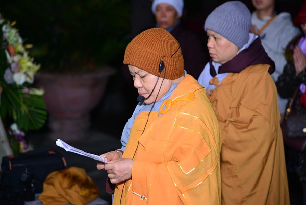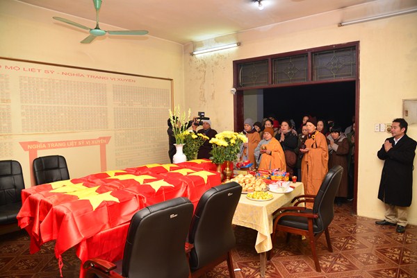 Đoàn làm lễ cầu siêu cho hương linh 14 anh hùng liệt sỹ mới được quy tập về nghĩa trang liệt sỹ Vị Xuyên