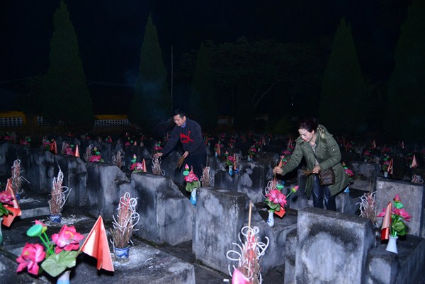 Thành viên đoàn từ thiện thắp hương tại nghĩa trang Vị Xuyên