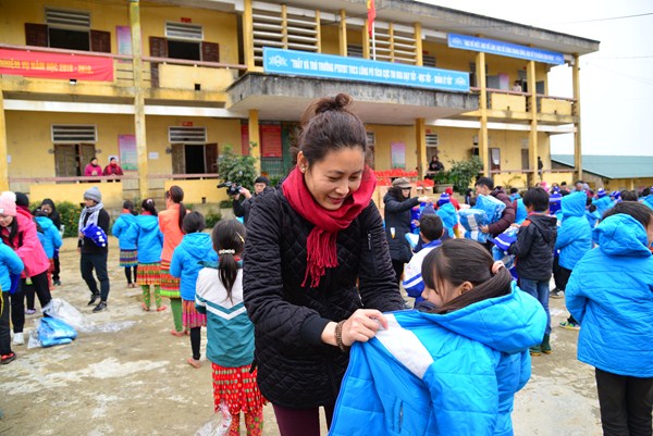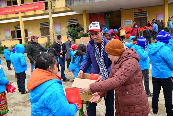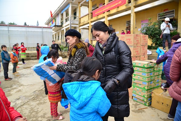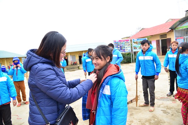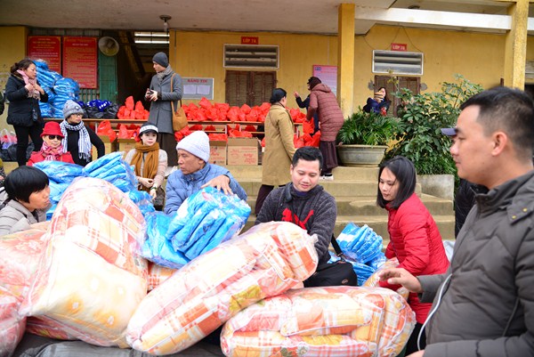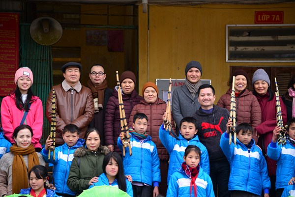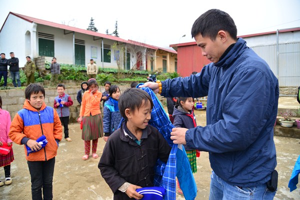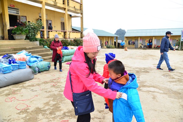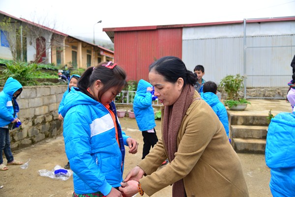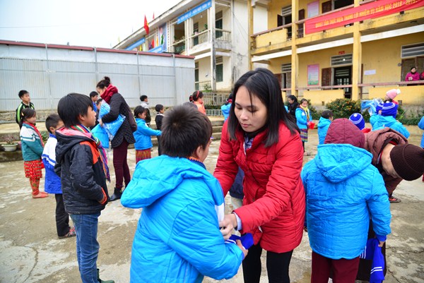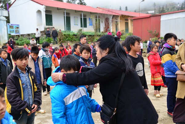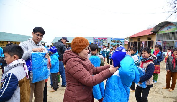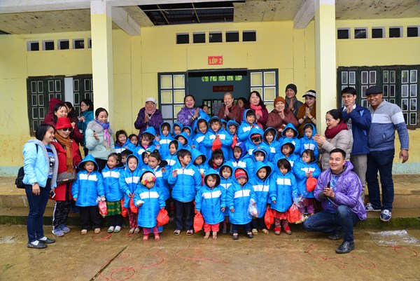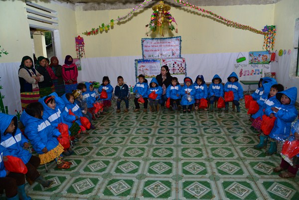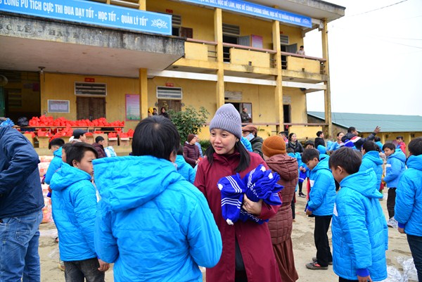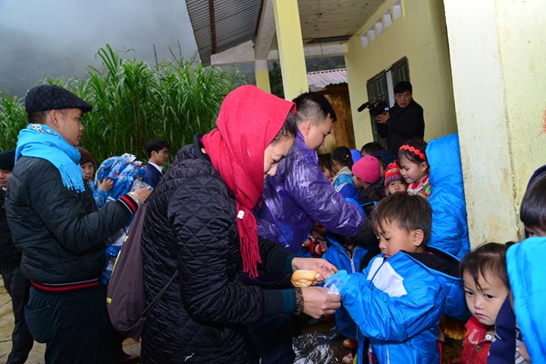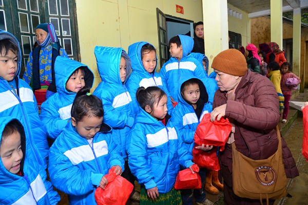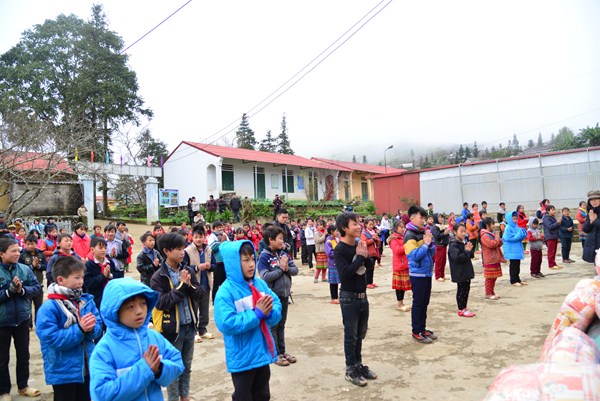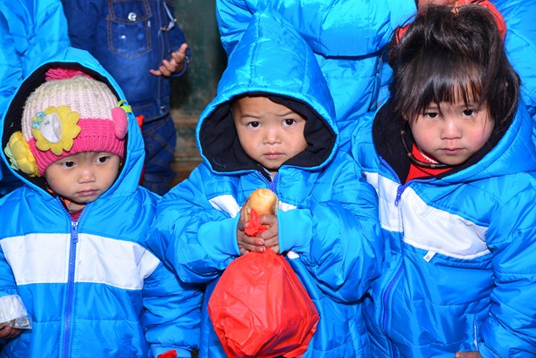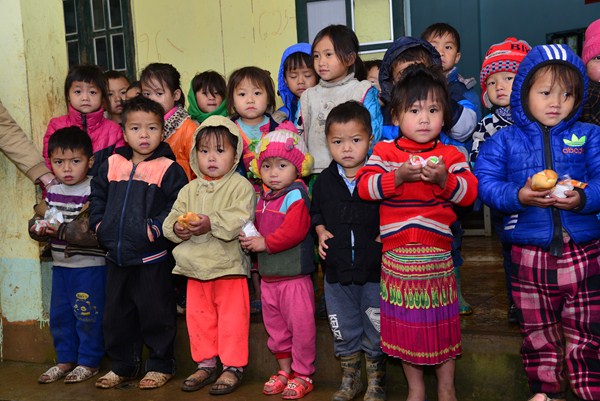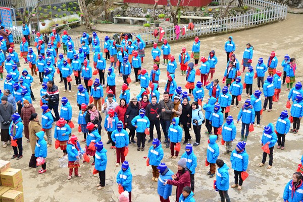 Học sinh điểm trường xã Lũng Pù nhận áo rét và quà từ đoàn từ thiện chùa Vẽ