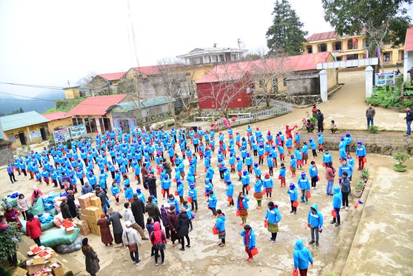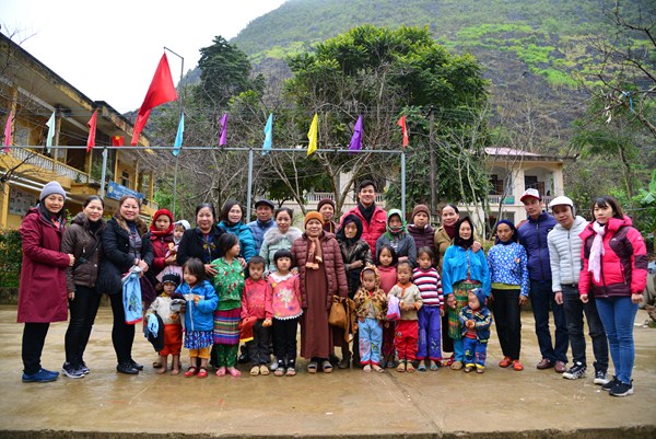 Vượt qua quãng đường gần 600km với hơn 16 tiếng đồng hồ ngồi trên xe, đoàn từ thiện chùa Vẽ, thành phố Hải Phòng do Ni sư Thích Tâm Chính – Trưởng Ban từ thiện xã hội GHPGVN thành phố Hải Phòng, trụ trì chùa Vẽ làm trưởng đoàn đã đến được với bà con và các em nhỏ thuộc xã Lũng Pù và xã Pải Lủng, huyện Mèo Vạc, tỉnh Hà Giang.