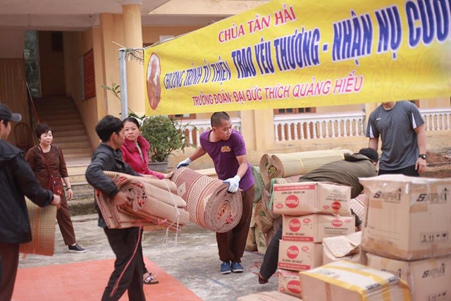 Đại đức Thích Quảng Hiếu – Trưởng đoàn từ thiện cũng chia sẻ: “Những món quà mà chúng tôi mang đến cho đồng bào Hoàng Su Phì ngày hôm nay không thấm thía là bao so với nhu cầu thiết yếu của cuộc sống tại vùng núi này, nhưng đó là cả tấm lòng mà toàn thể Phật tử chùa Tân Hải, cũng như các nhà hảo tâm, các mạnh thường quân muốn chia sẻ tới đồng bào nơi đây. Chúng tôi tin rằng nó sẽ là động lực, là nguồn động viên lớn, là niềm tin để đồng bào nơi đây sống lạc quan hơn, vững bước đi lên trong cuộc sống còn nhiều khó khăn.”.