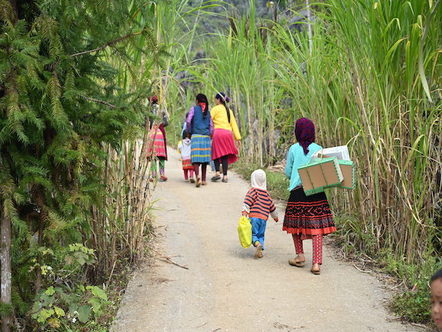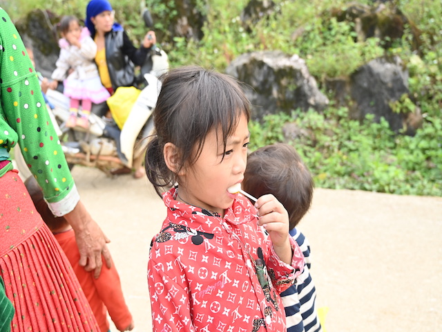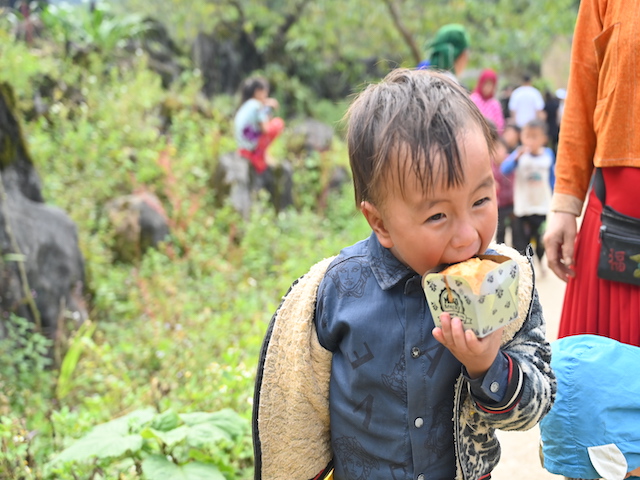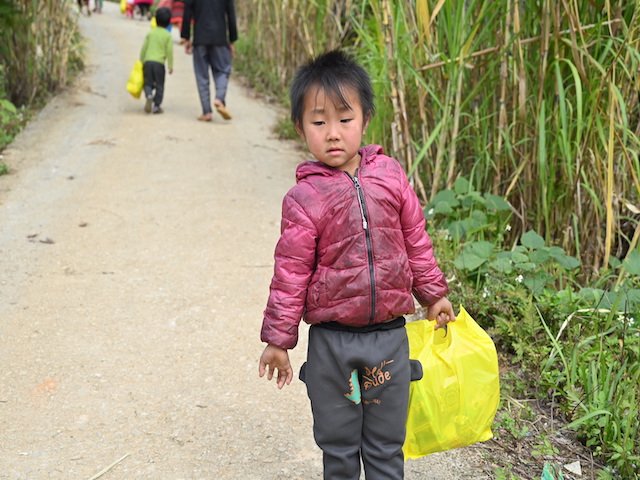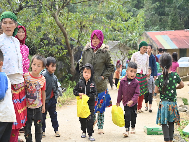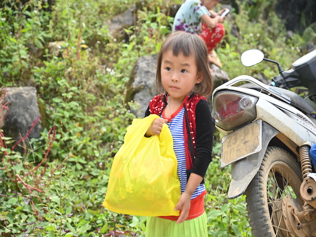 Vượt qua quãng đường hơn 500km với 14 giờ di chuyển bằng ô tô, đoàn đã tới thôn Sủng Mùng, xã Lũng Chinh, huyện Mèo Vạc. Tuy nhiên, điểm trưởng mầm non Sủng Mùng xe ô tô không thể vào được, đường vào trường lại nhỏ hẹp, phía dưới là vực sâu nên các thành viên trong đoàn phải nhờ phụ huynh và cán bộ thôn trở xuống điểm trường bằng phương tiện xe máy.
