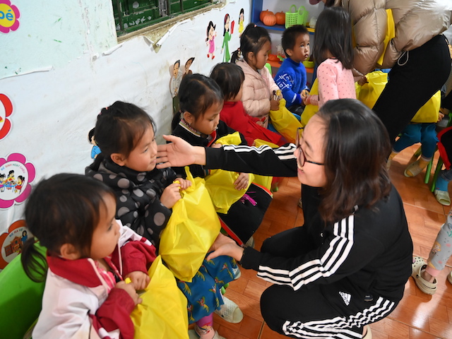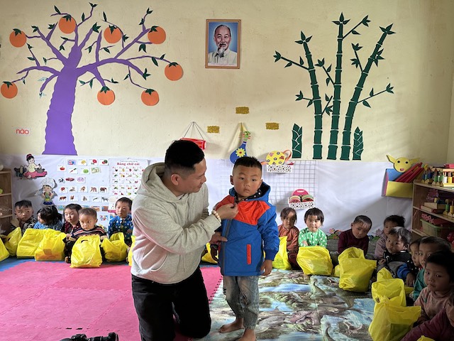 Tặng áo rét cho học sinh mầm non Tìa Sính
