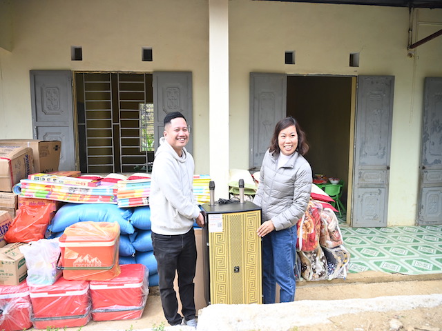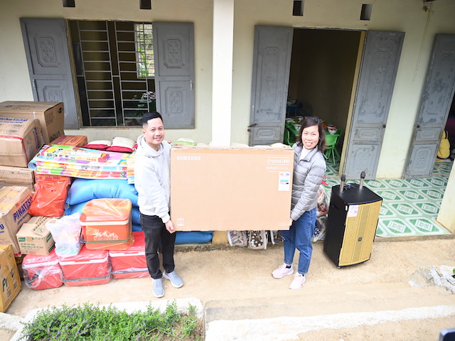 Tại 2 điểm trường, đoàn đã trao tặng hơn 1 tấn gạo, 1 chiếc TV, 1 chiếc tủ lạnh 130 lít để đựng thức ăn, 1 chiếc loa kéo, 2 chiếc quạt máy, thùng đựng cơm giữ nhiệt, mỳ ăn liền, sách vở, truyện tranh, đồ dùng học tập, chăn len, gối, chiếu xốp, 55 đôi ủng, 55 đôi dép, 55 chiếc áo phao, lương thực, thực phẩm, xô chậu, bánh kẹo, sữa tươi… cho đại diện Ban giám hiệu nhà trường và các em học sinh mầm non với tổng số tiền hơn 80 triệu đồng.