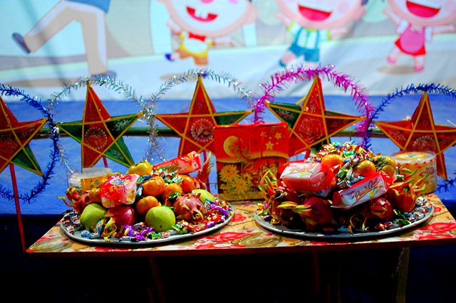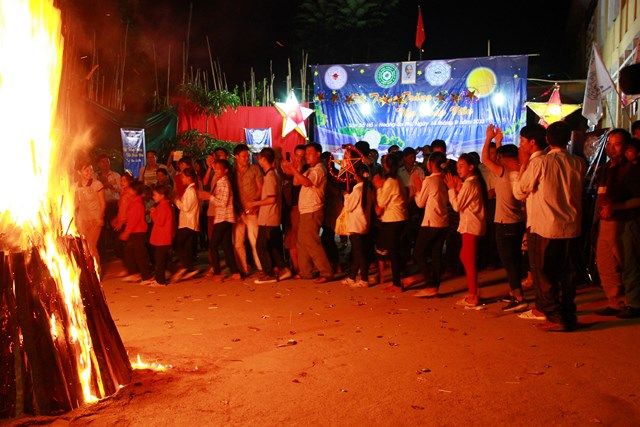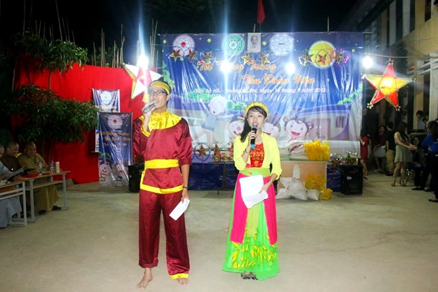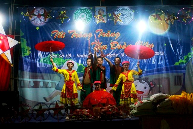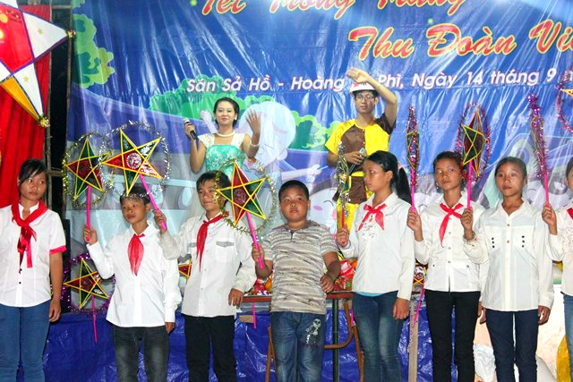 Không khí Trung thu thực sự đến gần với các em hơn bao giờ hết khi mặt trời dần khuất dạng. Những ánh nến, đèn ông sao, đèn lồng dần được thắp lên rực sáng giữa không gian núi rừng. Chị Hằng và chú Cuội xuất hiện và đem theo những lời ca tiếng hát của các anh chị ca sỹ đến từ Hà Nội. Những ca khúc thiếu nhi rước đèn ông sao hay những ca từ thắm đượm lòng từ bi, bao dung và tình người nhân ái trên nền nhạc Phật giáo đã tạo nên sự trầm bổng đầy cảm xúc cho các em và đồng bào dân tộc có mặt tại nơi đây.