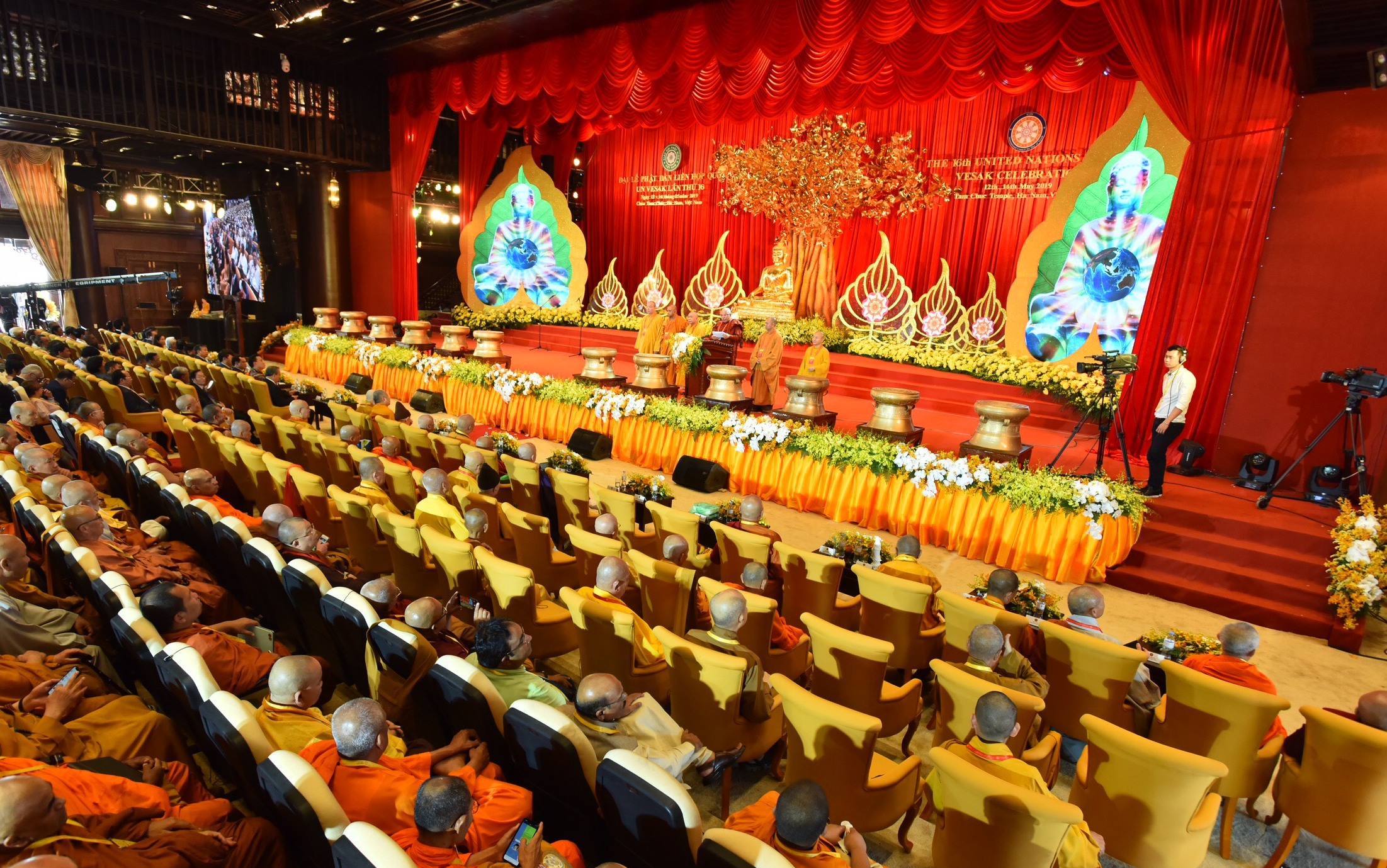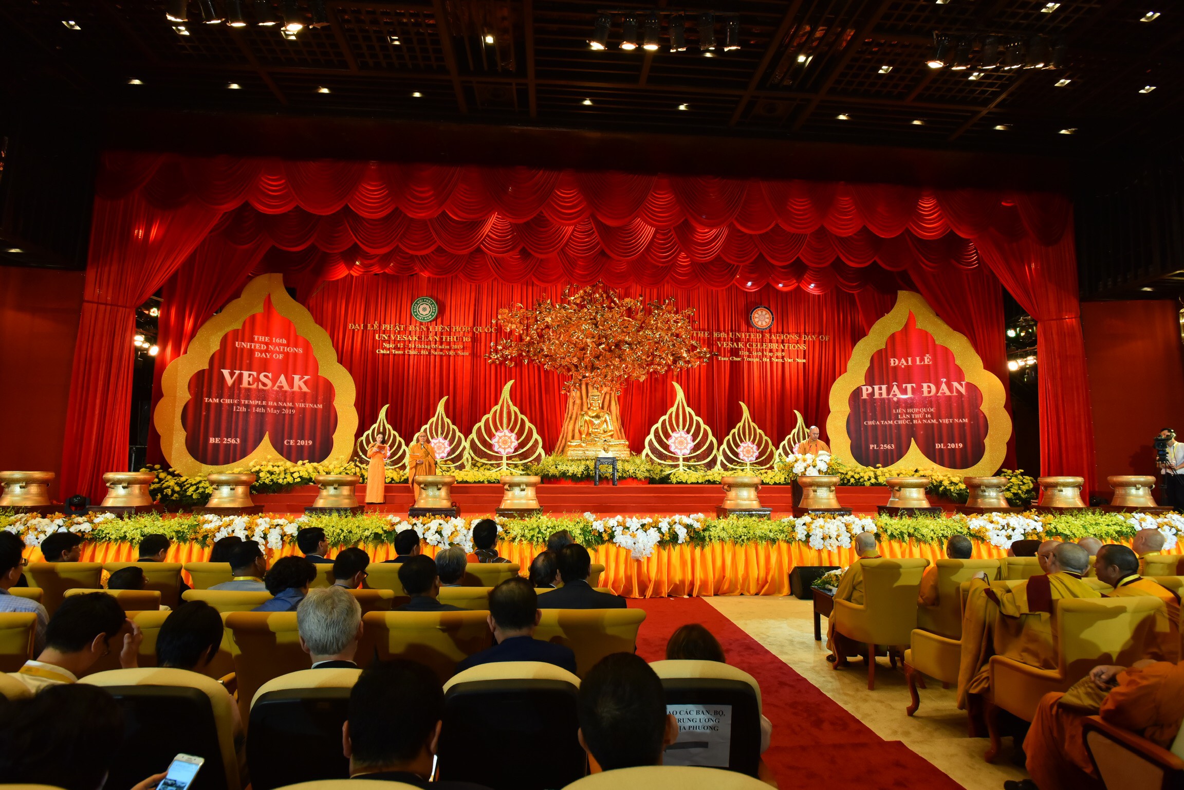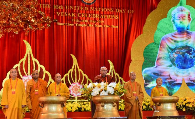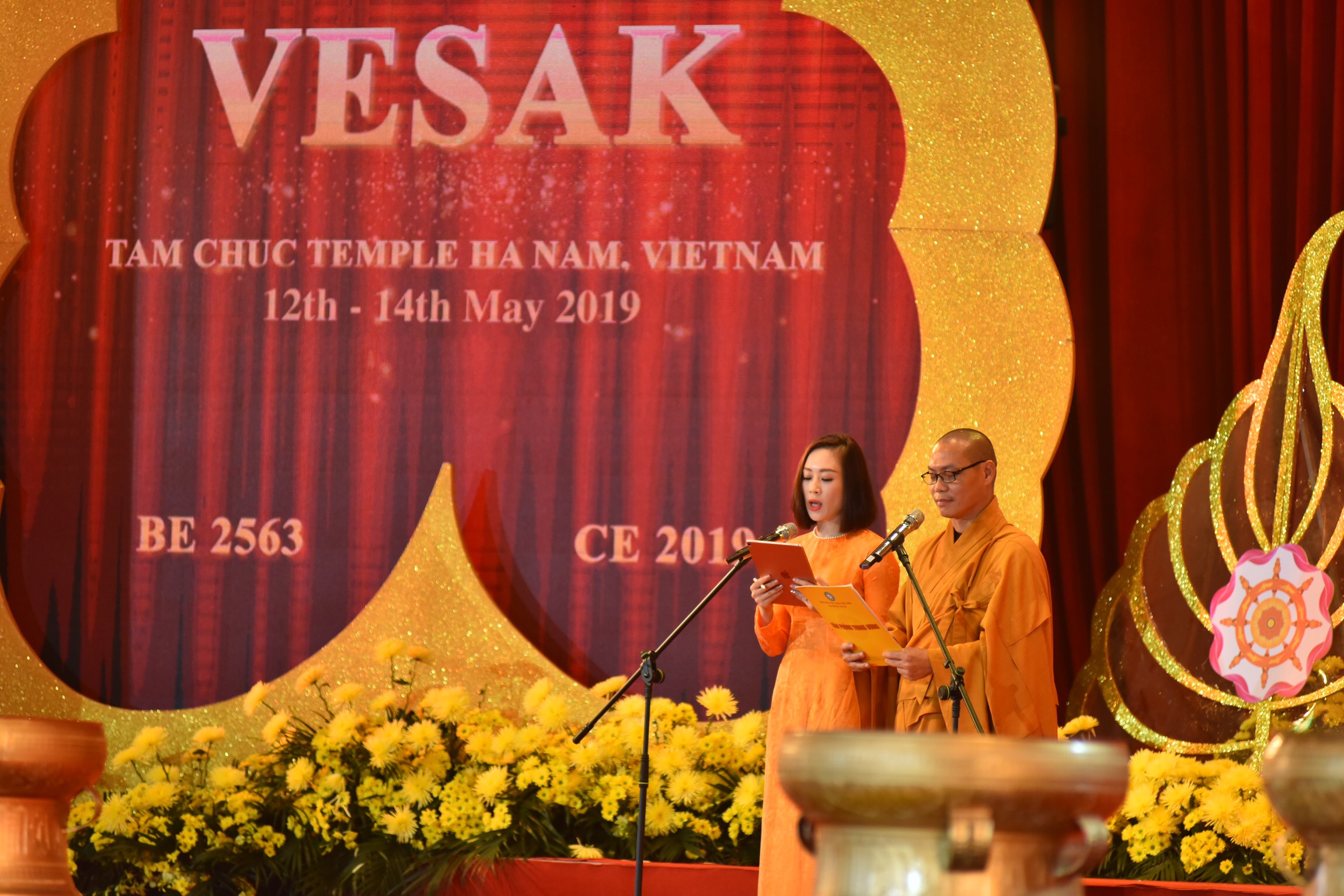 Sau chuỗi sự kiện, các hoạt động văn hóa ý nghĩa diễn ra trong 3 ngày, chư tôn đức giáo phẩm HT. Thích Đức nghiệp – Phó pháp chủ HĐCM GHPGVN, HT. TS. Thích Thiện Nhơn – Chủ tịch HĐTS, Chủ tịch Ủy ban Tổ chức Quốc tế Đại lễ Vesak LHQ, HT. GS. TS Phra Brahmapundit – Chủ tịch Ủy ban tổ chức Quốc tế Đại lễ Vesak Liên Hợp Quốc, ông Trương Hòa Bình – UVBCT, Phó Thủ tướng Thường trực Chính phủ Nước CHXHCNVN, bà Armida Salsiah Alisjahbana – Tổng giám đốc UNESCO, ông Nguyễn Đình Khang – Ủy viên Ban Chấp hành Trung ương đảng, Bí thư tỉnh ủy tỉnh Hà Nam cùng sự tham dự của lãnh đạo đảng, nhà nước, chư tôn đức tăng ni lãnh đạo GHPGVN, các Ban, viện Trung ương, các Đại sứ, bộ trưởng, trưởng các phái đoàn ngoại giao quốc tế, cùng hàng ngàn quý đại biểu trong và ngoài nước đã có mặt tại Hội trường chính để tham dự phiên bế mạc Đại lễ Vesak LHQ 2019