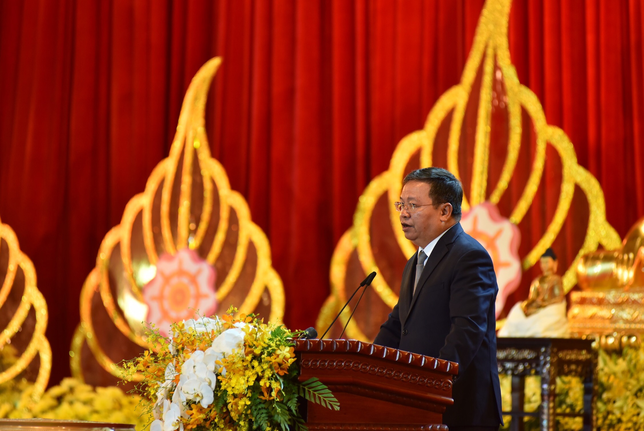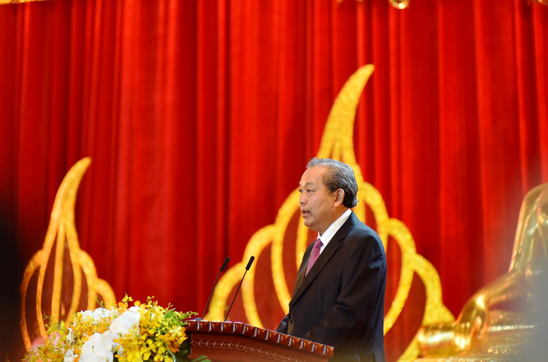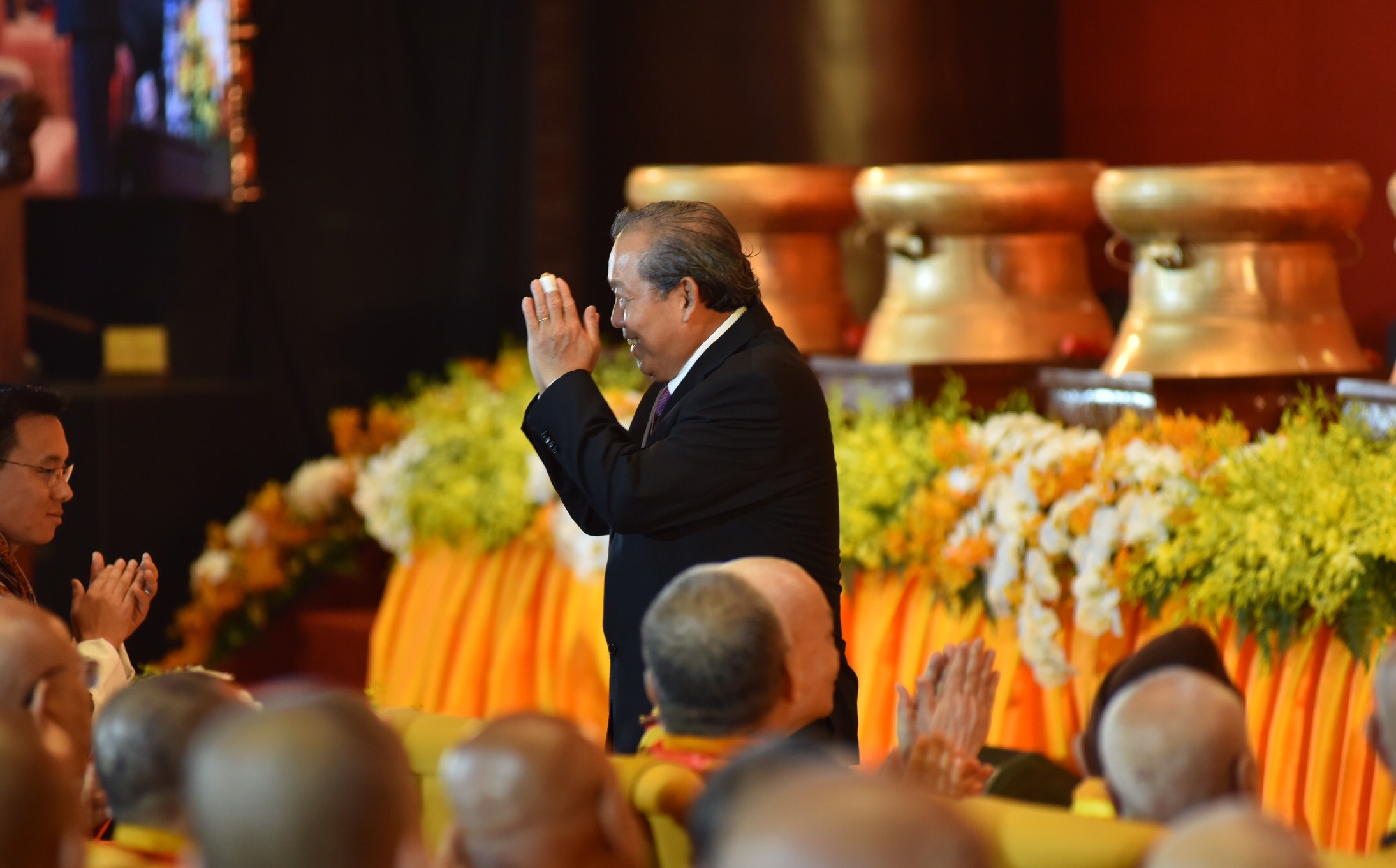 Đại diện Lãnh đạo đảng, nhà nước, ông Trương Hòa Bình – Phó Thủ tướng Thường trực chính phủ Nước CHXHCNVN phát biểu chúc mừng: “Đại lễ Vesak Liên Hợp quốc năm 2019 tại Việt Nam với chủ đề; “Cách tiếp cận của Phật giáo về sự lãnh đạo toàn cầu và trách nhiệm cùng chia sẻ vì xã hội bền vững” đã được tuyên xưng trong tinh thần dân chủ, hoà hợp và trách nhiệm lớn lao. Các Quý vị đã có cơ duyên để gặp gỡ, trao đổi ý kiến, hội thảo, thảo luận với các phái đoàn đến từ nhiều truyền thống Phật giáo khác nhau về những giá trị tích cực của Phật giáo và đóng góp của Phật giáo trong thời đại ngày nay trên các phương diện quan trọng như: vì hoà bình bền vững, về chăm sóc sức khoẻ, về giáo giáo dục và đạo đức toàn cầu, về tiêu thụ có trách nhiệm, đồng thời đưa ra những quan điểm và các giải pháp của Phật giáo trong tinh thần từ bi và trí tuệ đối với các vấn đề đang ảnh hưởng đến việc xây dựng xã hội phát triển bền vững”.