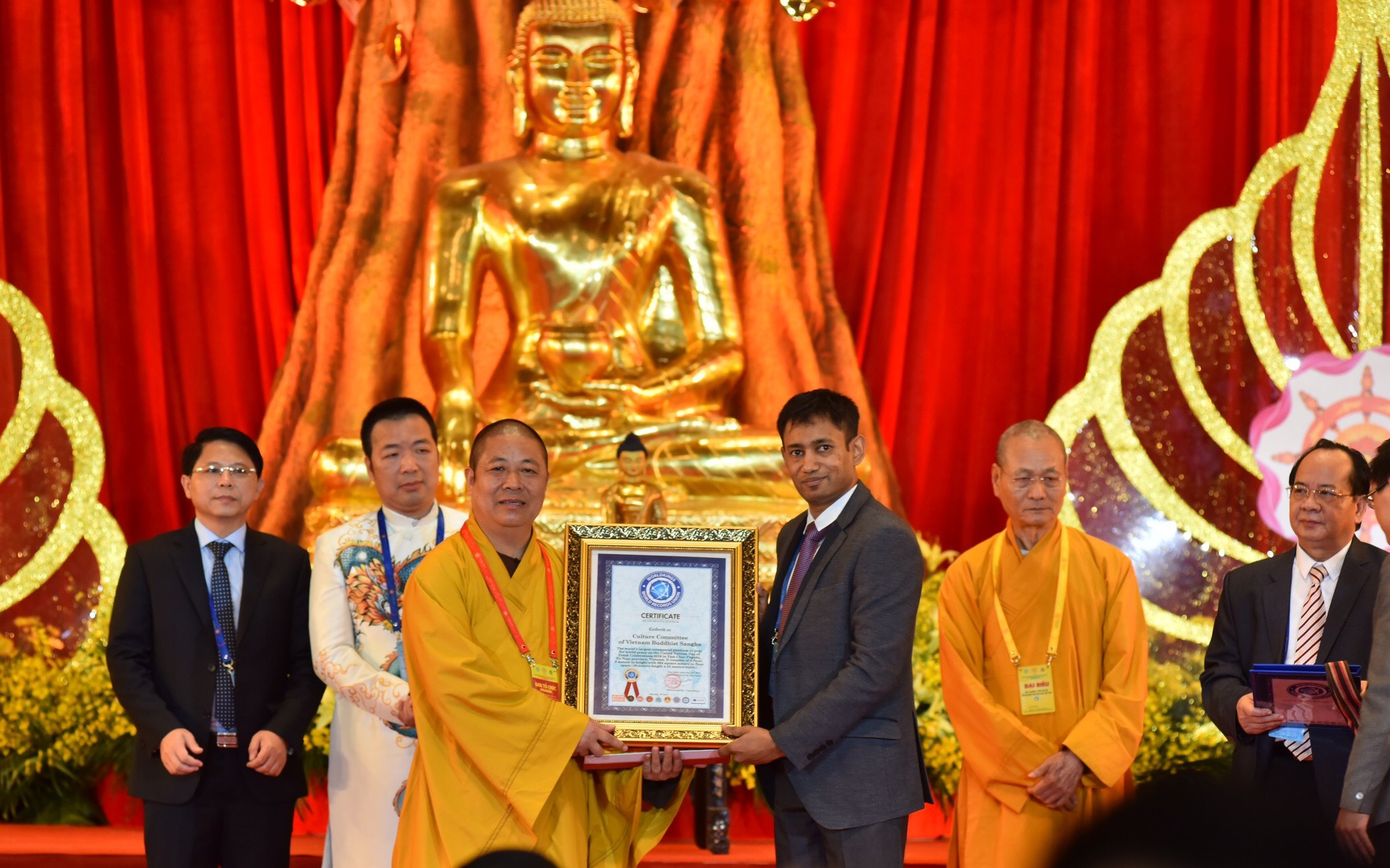 TT. Thích Thọ Lạc, TT. Thích Thọ Lạc, Ủy viên Thư ký HĐTS, Quyền Trưởng Ban Văn hóa TW GHPGVN, HT. Thích Hải Ấn, Ủy viên Thường trực, Viện trưởng Học viện PGVN tại Huế, TT. Thích Nhật Từ, Phó Tổng Thư ký Ủy ban Tổ chức Quốc tế ICDV-Vesak 2019 đại liện BTC nhận kỷ kỷ niệm chương từ hội Liên Minh Kỷ lục thế giới và Kỷ lục gia Việt Nam.