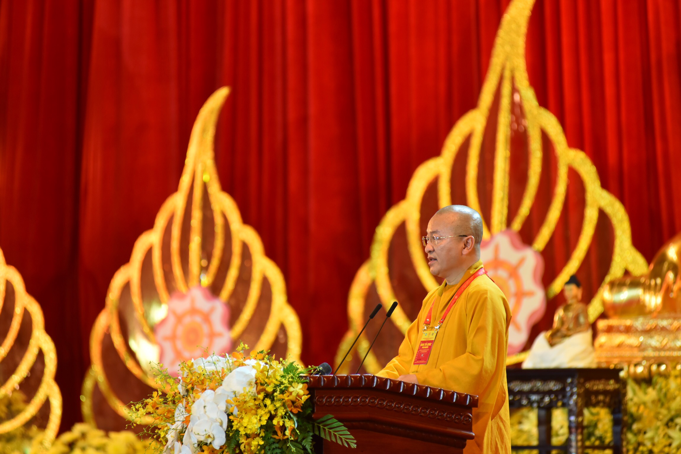 Tiếp đó, HT. Thích Thanh Nhiễu – Phó Chủ tịch Thường trực HĐTS GHPGVN, Phó Thường trực Ủy ban Tổ chức Quốc tế Đại lễ Vesak LHQ 2019 tuyên đọc diễn văn bế mạc. Đại lễ Vesak LHQ diễn ra tại Trung tâm văn hóa Phật giáo Tam Chúc, tỉnh Hà Nam đã thành công tốt đẹp, đã có 1600 vị đại biểu đến từ 115 quốc gia và vùng lãnh thổ tham dự, đồng thuận Tuyên bố chung Hà Nam cho sự phát triển bền vững của cộng đồng Phật giáo trên toàn thế giới, góp phần xây dựng hòa bình nhân loại. Hoà thượng gửi lời cảm ơn sâu sắc đến lãnh đạo đảng, nhà nước từ trung ương đến địa phương thuộc tỉnh Hà Nam, Ủy ban tổ chức quốc tế ICDV, các đơn vị tài trợ,… đã chia sẻ, tạo điều kiện để đại lễ thành công viên mãn. Hòa thượng chính thức tuyên bố: Đại lễ Vesak LHQ 2019 khép lại trong thành công tốt đẹp.
