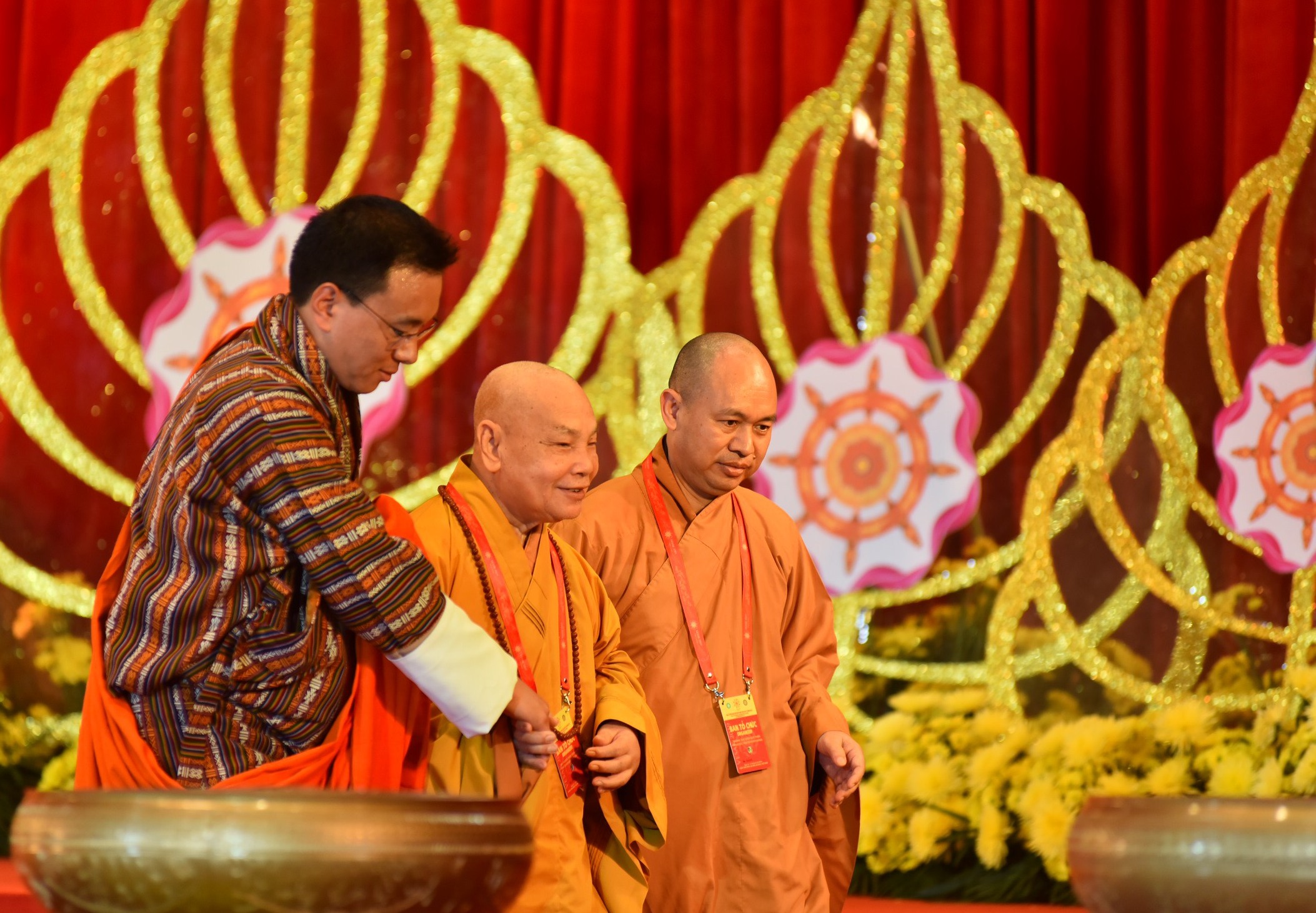 Nhân đó, ông Tashi Dorji, Chủ tịch Thượng viện Vương quốc Bhutan tặng quà cho Ủy ban tổ chức Quốc tế HT. Thích Thiện Nhơn lên nhận quà từ Quốc Vương Bhutan