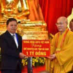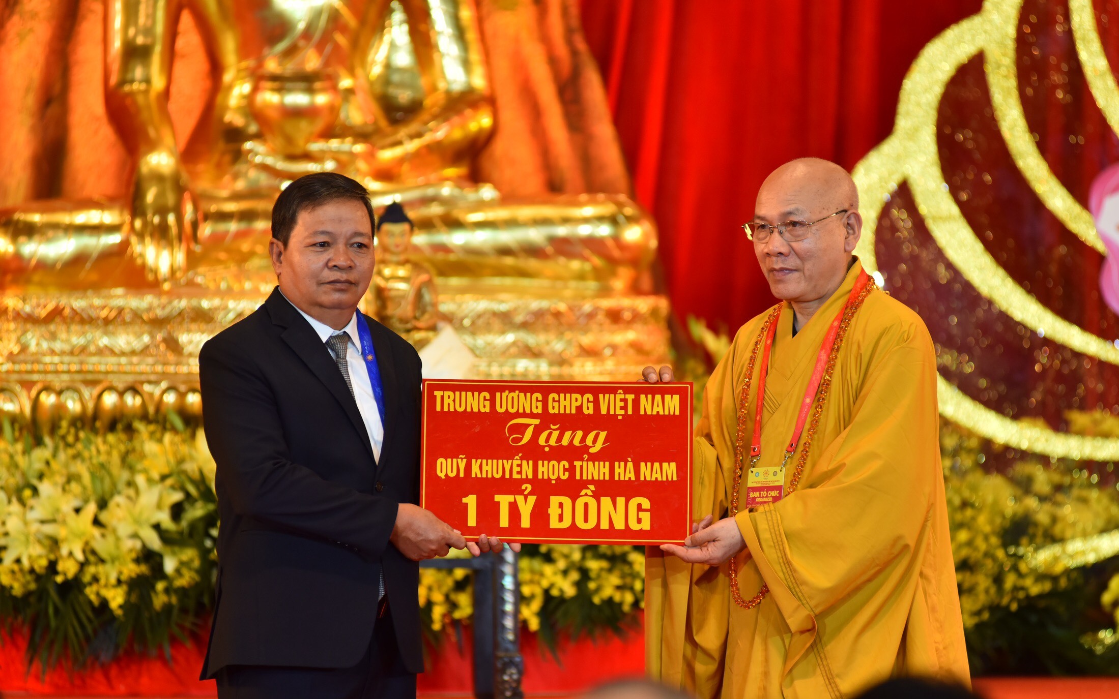 Kết thúc buổi lễ, BTC đã trao tặng 1 tỷ đồng đến quỹ khuyến học tỉnh Hà Nam. HT. Thích Quảng Tùng, Phó Chủ tịch HĐTS, Trưởng ban Từ thiện xã hội TW trao, ông Nguyễn Xuân Đông đại diện quỹ khuyến học đón nhận.