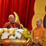 TT. Thích Đức Thiện, Tổng Thư ký Ủy ban Tổ chức Quốc tế Đại lễ Vesak LHQ 2019 thay mặt BTC tuyên đọc “Tuyên bố chung – Tuyên bố Hà Nam Vesak LHQ 2019” bằng tiếng Việt. HT.TS. Tampalawela Dhammaratana, Phó chủ tịch Ủy ban Tổ chức Quốc tế ICDV tuyên đọc Tuyên bố Hà Nam bằng anh ngữ.