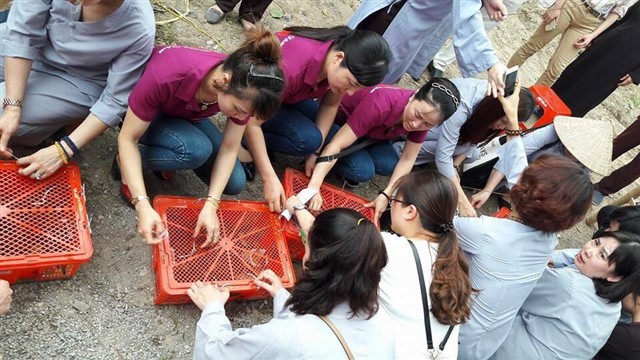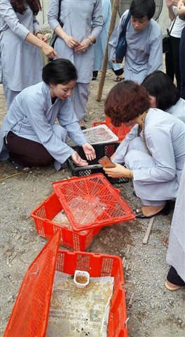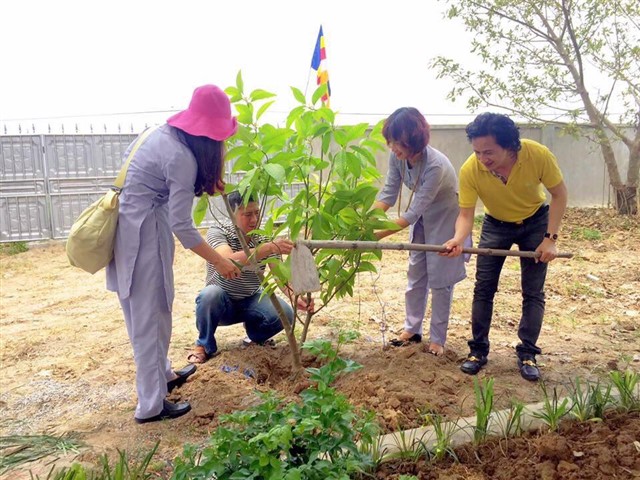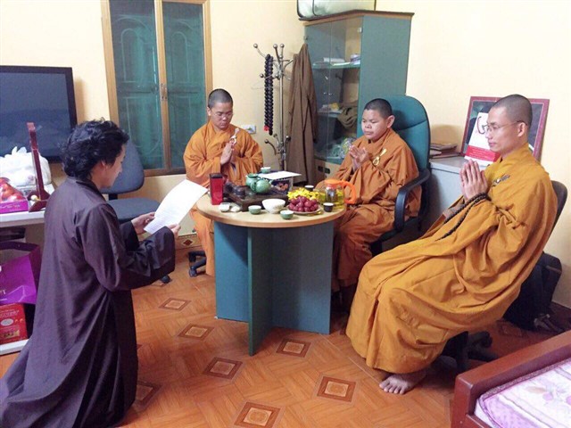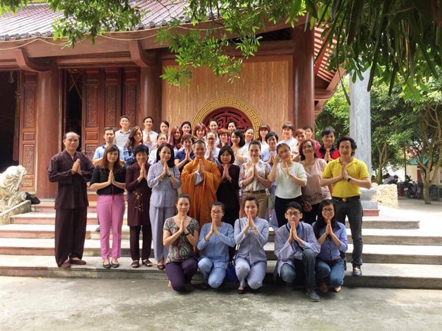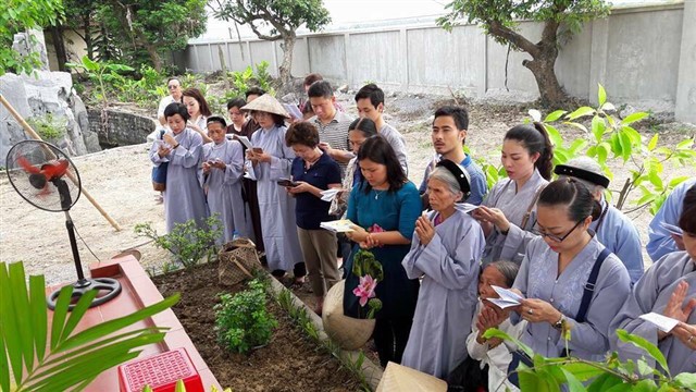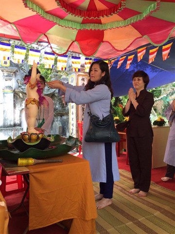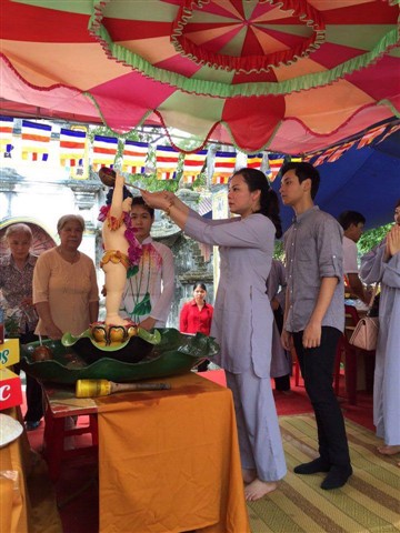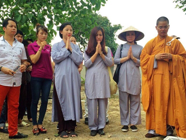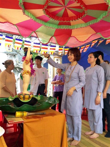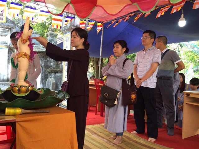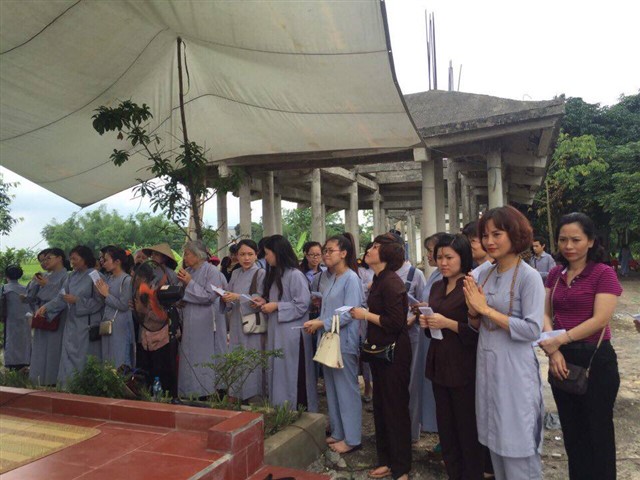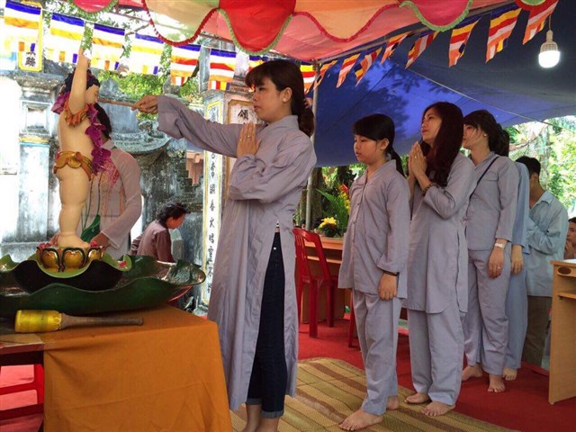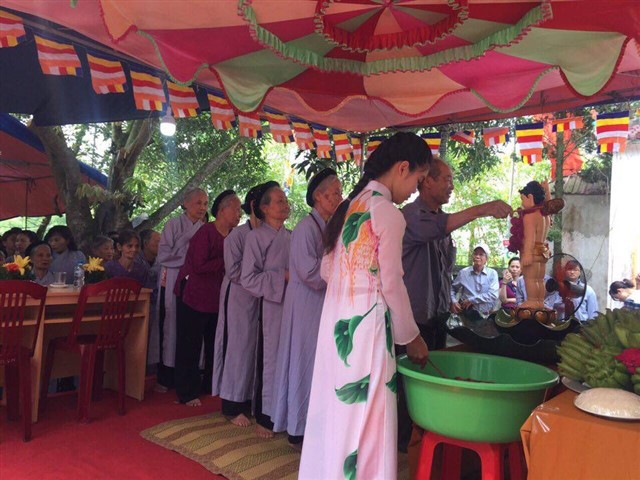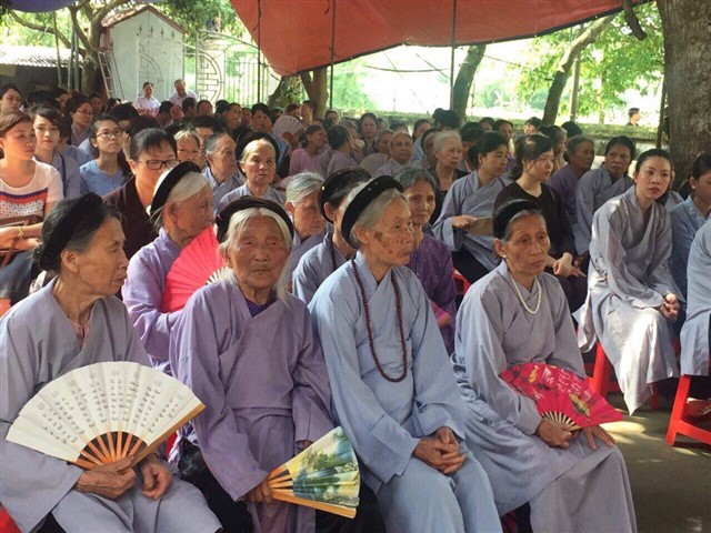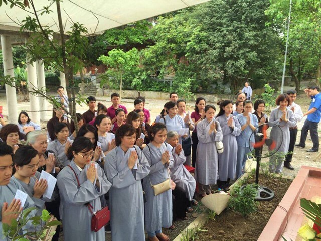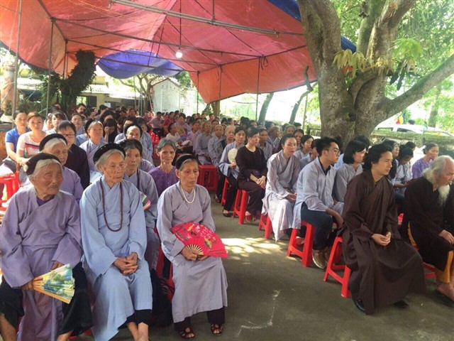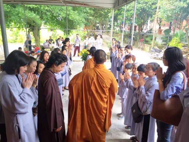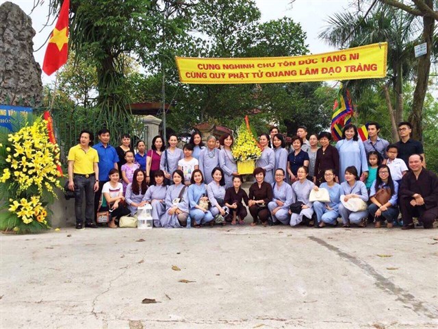 Nhiều đoàn Phật tử, Đạo tràng Viên Giác (Hà Nội) cũng về dự lễ, cùng tham gia hộ niệm các thời khóa tại chùa trong ngày vui trọng đại của những người con Phật.