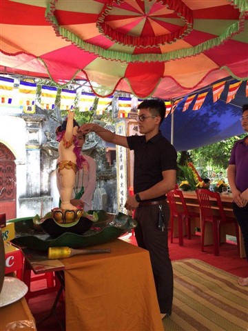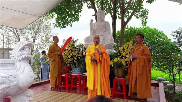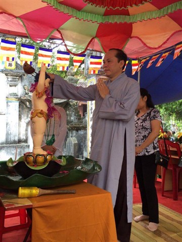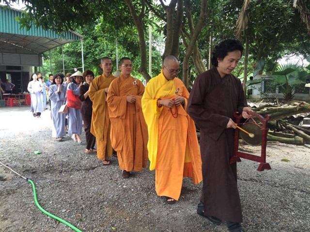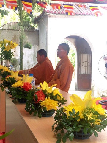 Từ sáng sớm ngày mồng 9.4 âm lịch, các Phật tử mỗi người mỗi việc, chia thành nhiều ban phục vụ đại lễ. Đúng 8h30, đạo tràng cung thỉnh chư tôn thiền đức chứng minh đại lễ. TT.Thích Thanh Anh – Phó Chánh Thư ký GHPGVN tỉnh Bắc Ninh, phó hiệu trưởng trường Trung cấp Phật học Bắc Ninh, trụ trì chùa Đồng Kỵ, tỉnh Bắc Ninh cùng chư tôn đức đồng tham dự.