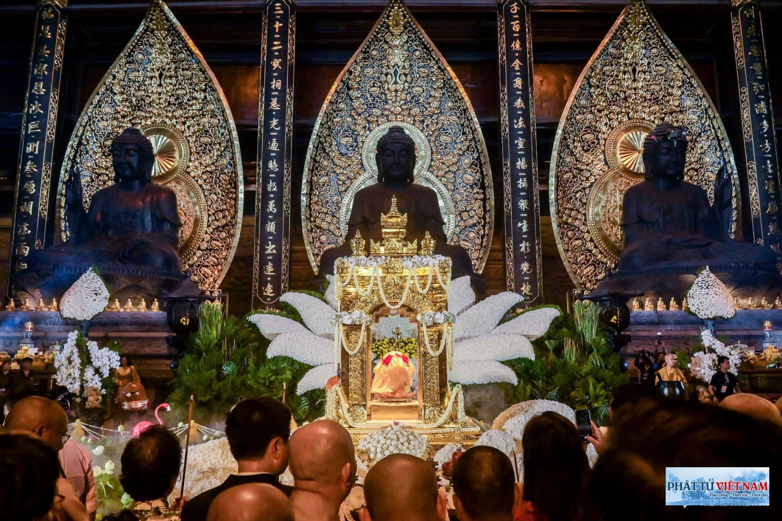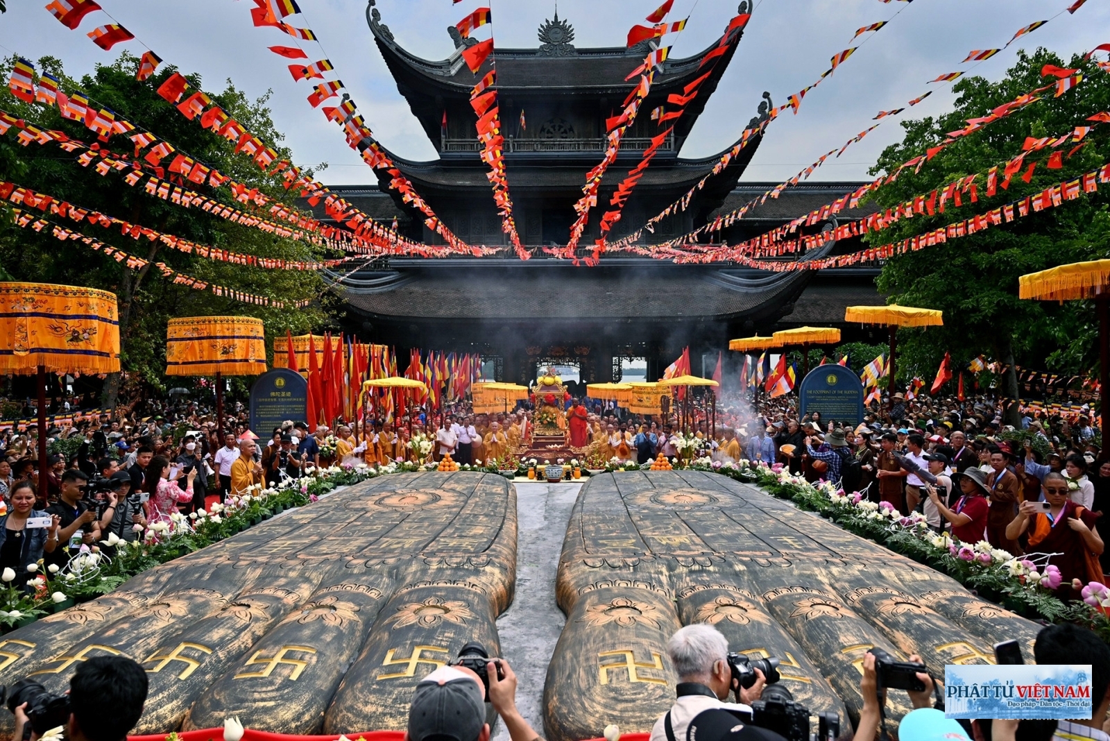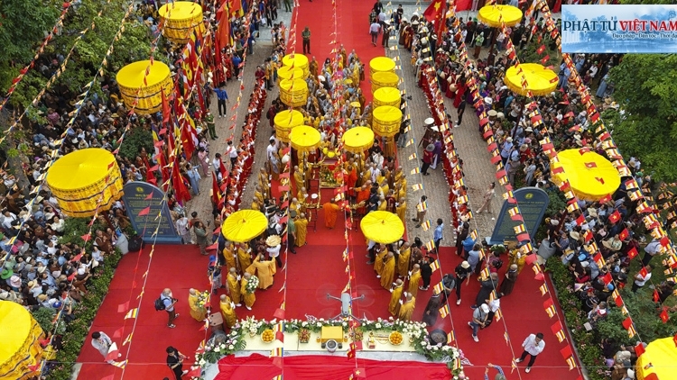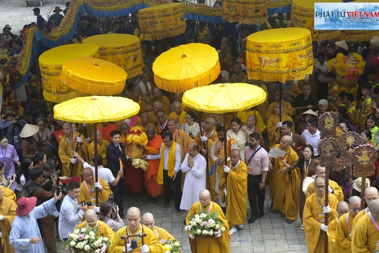 Hàng ngàn người dân, phật tử và chư tôn đức tăng ni tham gia cung rước trong không khí trang nghiêm, thanh tịnh. Đoàn xe cung rước xá lợi Phật di chuyển an toàn, chậm rãi qua các tuyến đường, được lực lượng chức năng bảo vệ nghiêm ngặt. Dọc hai bên đường vào chùa Tam Chúc, đông đảo người dân thành kính chắp tay chờ đón xá lợi Phật.