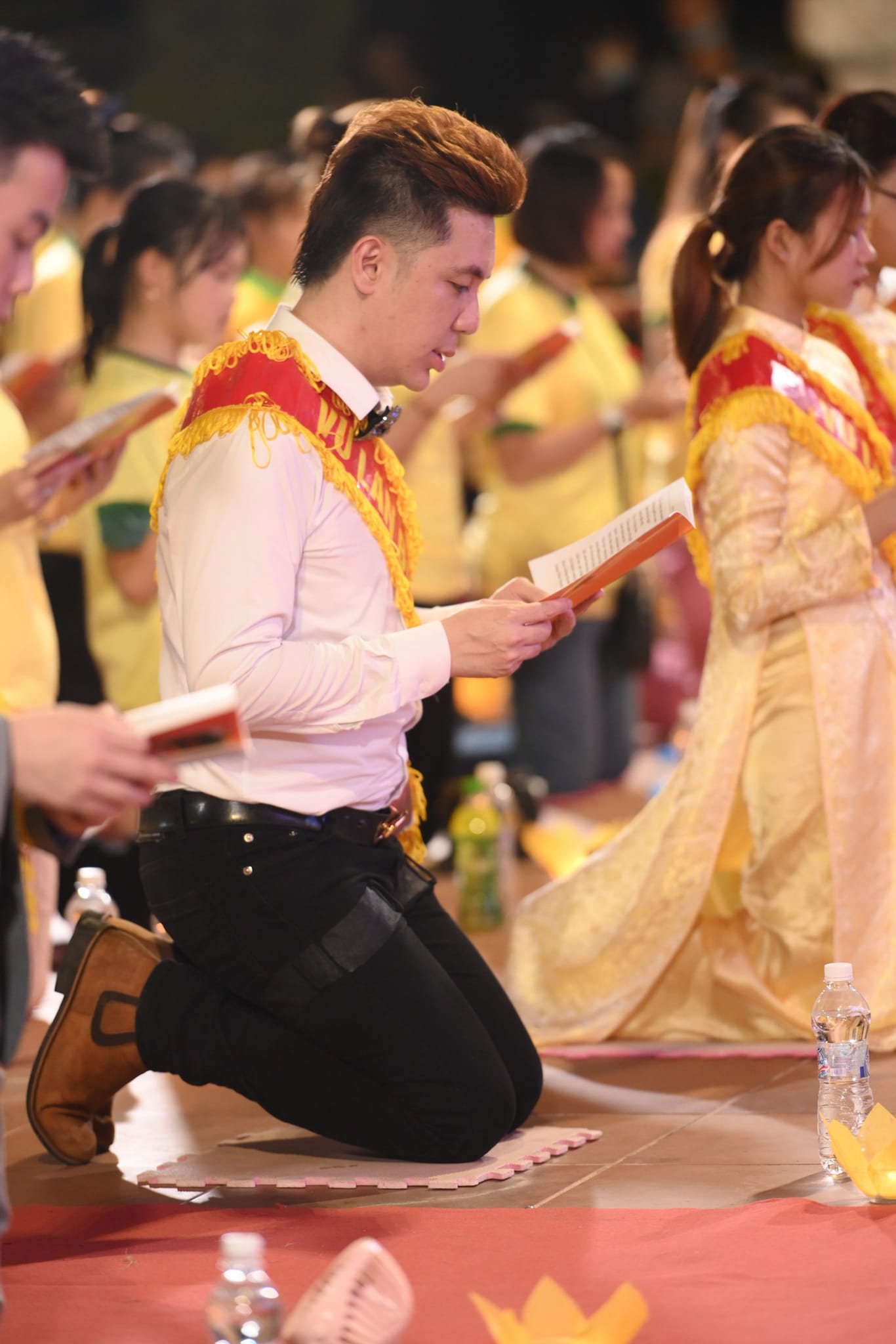 Đặc biệt nghi lễ “ Bông hồng cài áo” là một nghi lễ không thể thiếu trong mỗi đại lễ Vu Lan – Báo Hiếu, hàng ngàn người tham dự đại lễ đã được cài lên ngực áo của mình những bông hoa hồng đấy ý nghĩa và linh thiêng; những ai còn cha, còn mẹ sẽ được diễm phúc cài lên ngực áo của mình một bông hoa hồng màu đỏ thắm; những ai mất cha hoặc mất mẹ sẽ cài lên ngực áo của mình một bông hoa hồng màu hồng và những ai kém may mắn hơn khi mất cả cha và mẹ sẽ ngậm ngùi cài lên ngực áo của mình một bông hoa hồng màu trắng trinh nguyên, tượng trưng cho sự đau thương, mất mát. Nhưng cho dù có cài hoa màu gì đi chăng nữa thì cha mẹ vẫn luôn hiện hữu trong sâu thẳm tâm hồn của mỗi chúng ta. Buổi lễ cài hoa hồng đã diễn ra trong không khí trang nghiêm, thành kính, toàn thể đại chúng đã bồi hồi, xúc động khi nghĩ nhớ về công lao trời biển của cha và mẹ.