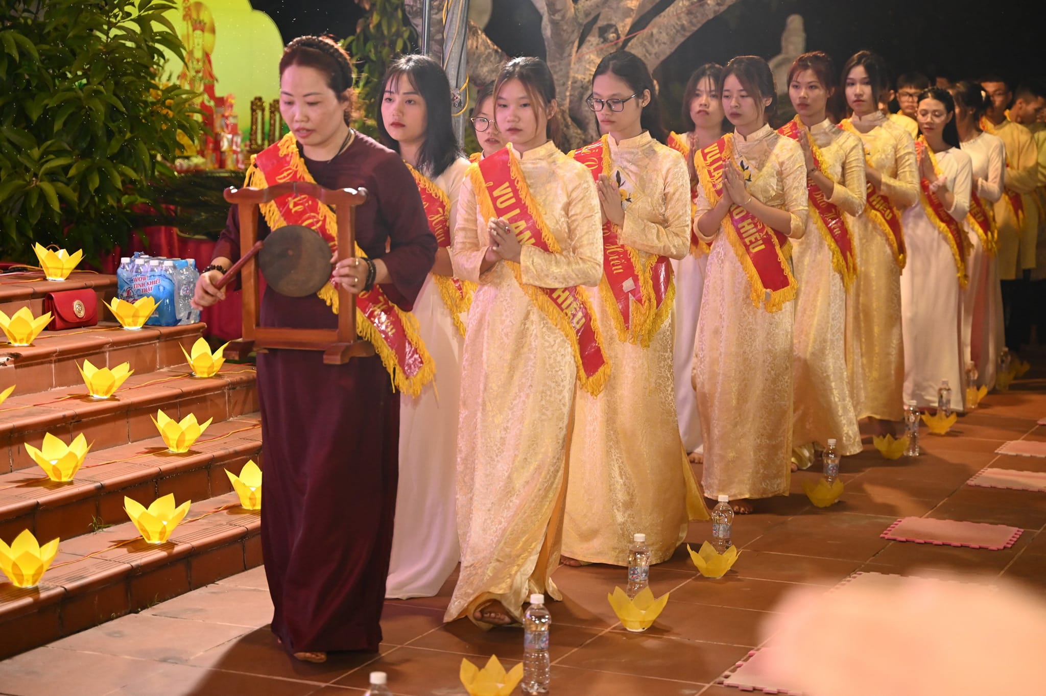 Để tưởng nhớ đến thâm ân cha mẹ, tri ân công sinh dưỡng, nuôi nấng con cái nên người, hàng ngàn ngọn nến, hàng ngàn ngọn hoa đăng đã được thắp sáng khắp sân chùa Ninh Tảo, càng làm cho buổi lễ trở nên linh thiêng và ý nghĩa hơn. Mỗi ngọn nến tượng trưng cho tình yêu thương vô bờ bến của cha và mẹ, mong mỗi chúng ta hay giữ cho ngọn nến đó, để ngọn nến đó được sáng mãi, để cha và mẹ luôn ở mãi bên chúng ta. Cầm ngọn nến trên tay, chắc hẳn mỗi chúng đều thấy xúc động, ăn năn hối lỗi về những việc mình đã làm cho cha mẹ phải phiền lòng, nguyện sẽ cố gắng noi theo tấm gương hiếu hạnh của Ngài Đại Hiếu Mục Kiền Liên Bồ Tát, luôn phụng dưỡng ông bà, cha mẹ khi ông bà cha mẹ còn tại thế và siêng năng làm những việc thiện lành để hồi hướng công đức lành đó cho ông bà cha mẹ đã quá vãng được sinh vể cảnh giới an lành.