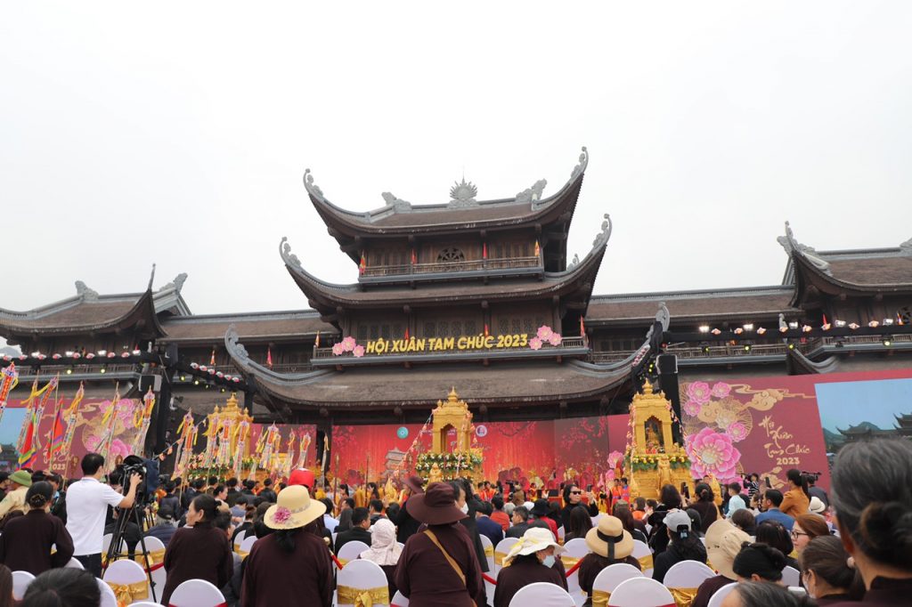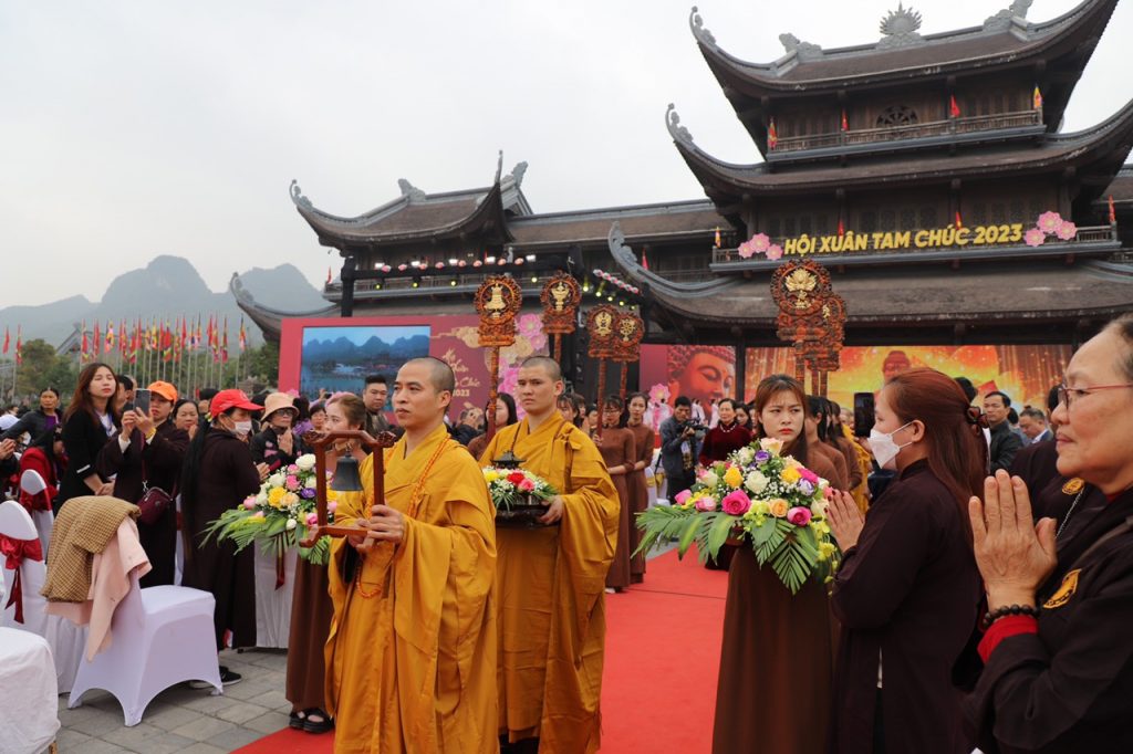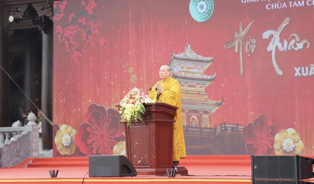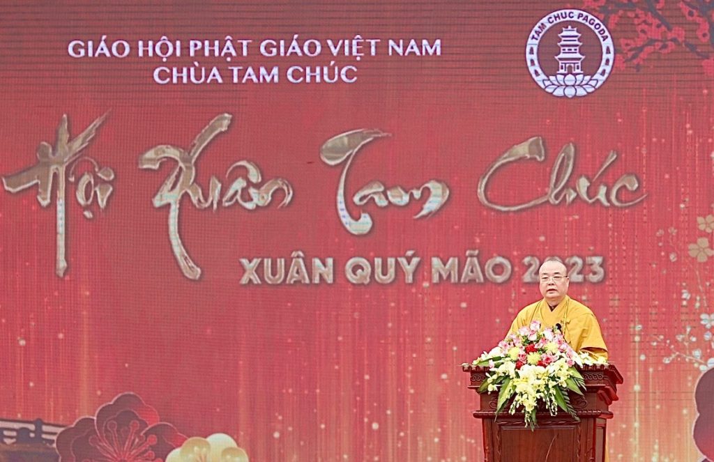 Phát biểu khai mạc, HT.Thích Thanh Nhiễu gửi lời chúc đến toàn thể đồng bào Phật tử, nhân dân cả nước bước sang năm mới an lạc, gia đình an vui hạnh phúc, cát tường như ý; dân giàu nước mạnh xã hội công bằng và phát triển. Hòa thượng cho biết, lễ hội Xuân Tam Chúc là hoạt động văn hóa hằng năm để đáp ứng nhu cầu về văn hóa, tinh thần; giới thiệu, quảng bá với du khách trong và ngoài nước về những giá trị văn hóa, truyền thống của dân tộc, nét độc đáo tại lễ hội, cũng như bảo tồn, phát huy giá trị văn hóa của địa phương. Chùa Tam Chúc là một trong những điểm đến hấp dẫn trong hành trình kết nối di sản văn hóa tâm linh, thu hút đông đảo du khách trong và ngoài nước về với Hà Nam.