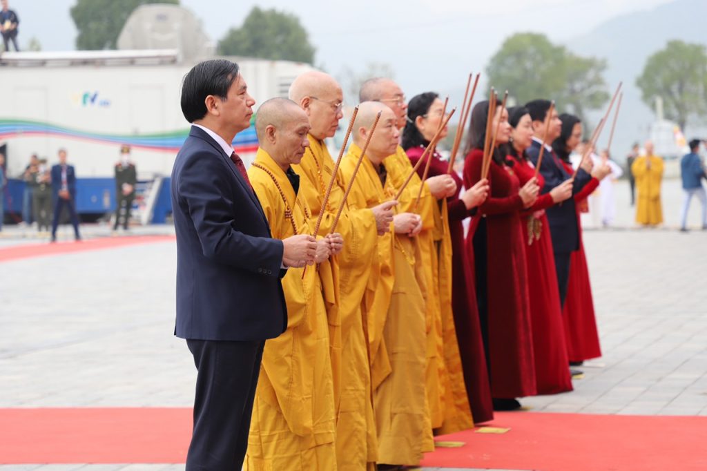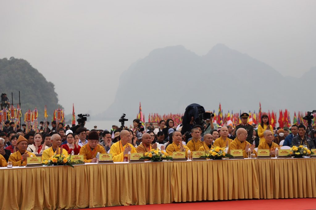 Quang lâm chứng minh và tham dự buổi lễ có: HT.Thích Thanh Nhiễu – Phó Chủ tịch TT HĐTS GHPGVN, Trụ trì chùa Tam Chúc, Trưởng BTC; HT.Thích Bảo Nghiêm, HT.Thích Quảng Tùng, HT.Thích Thanh Điện – đồng Phó Chủ tịch HĐTS GHPGVN; TT.Thích Minh Quang – Phó Trụ trì chùa Tam Chúc, chư tôn đức Tăng ni và đông đảo quý Phật tử thập phương cùng về tham dự.