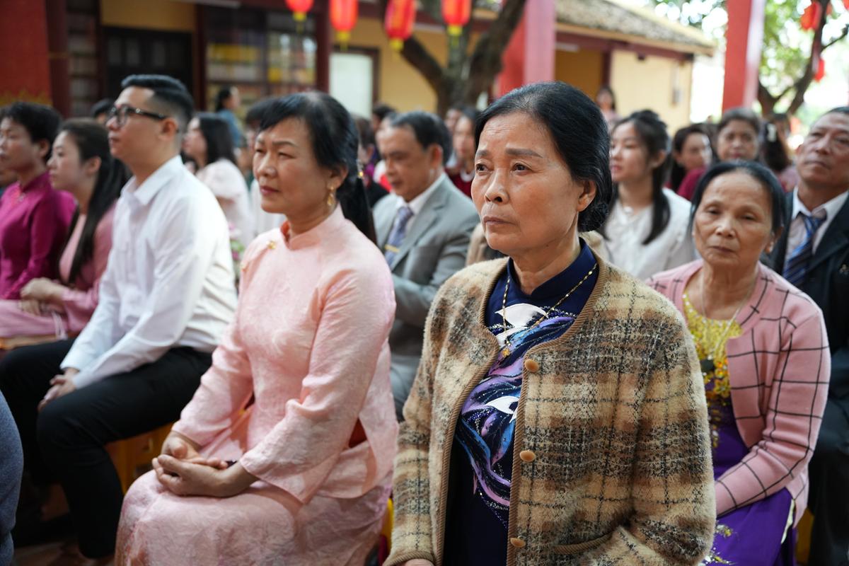 Từ ý nghĩa ấy, Hòa thượng nhắc đến “thiên tước thọ” – phúc lành quý báu trong đời người. Trước hết là phúc duyên được sinh ra làm người trong một gia đình có nền tảng đạo đức, được lớn lên trong tình thương của cha mẹ. Sự hiện diện của ông bà, cha mẹ và họ hàng hai bên trong buổi lễ chính là nguồn phúc lành và điểm tựa tinh thần để con cháu tiếp nối, xây dựng cuộc sống an hòa, hạnh phúc… Hòa thượng cũng bày tỏ lời tri ân đến các gia đình đã tin tưởng lựa chọn chùa Bằng làm nơi gửi gắm đời sống tâm linh, đồng thời hướng dẫn các đôi bạn trẻ khởi đầu đời sống hôn nhân bằng nền tảng đạo nghĩa, để cùng nhau vun đắp mái ấm bền vững, trọn nghĩa phu thê trên con đường “bách niên giai lão”.