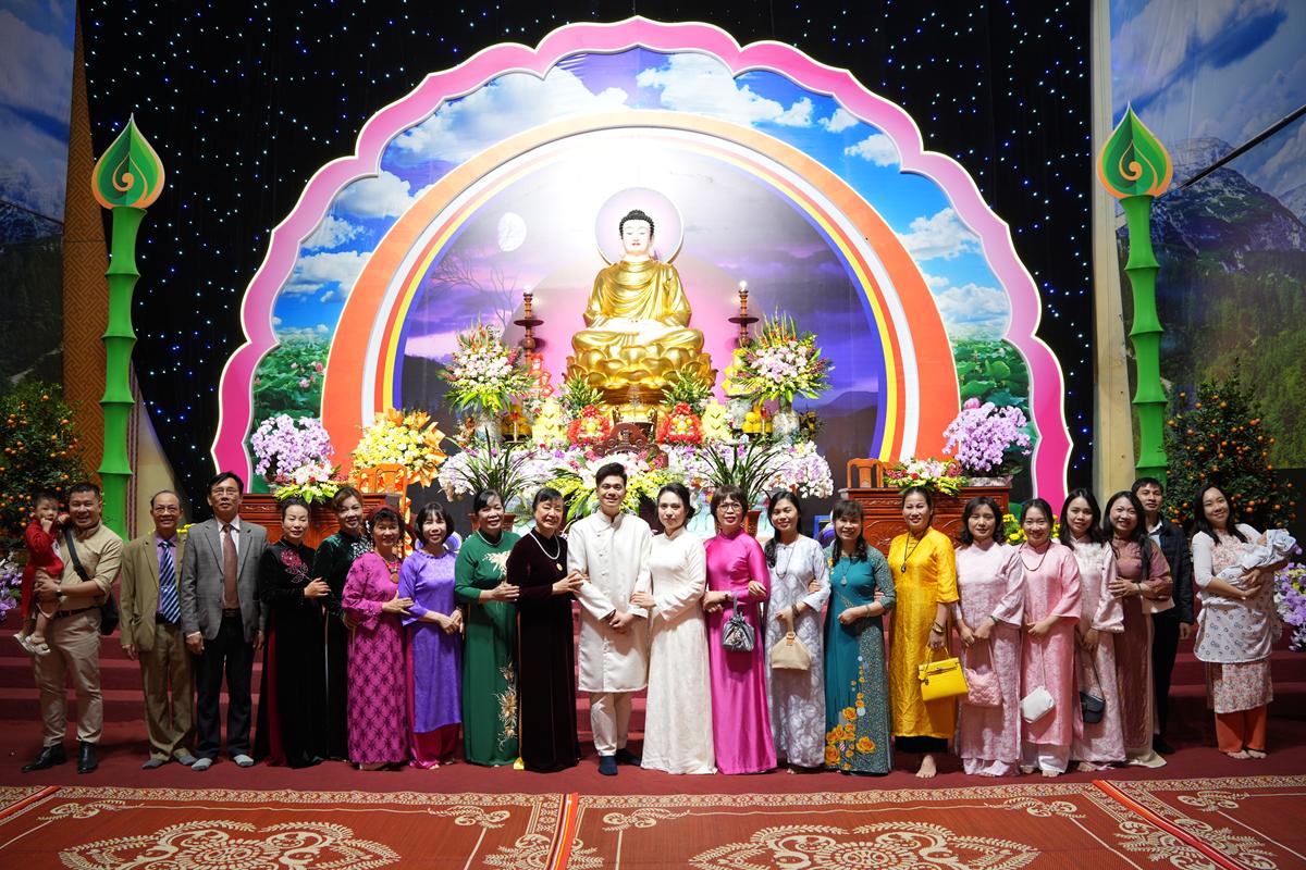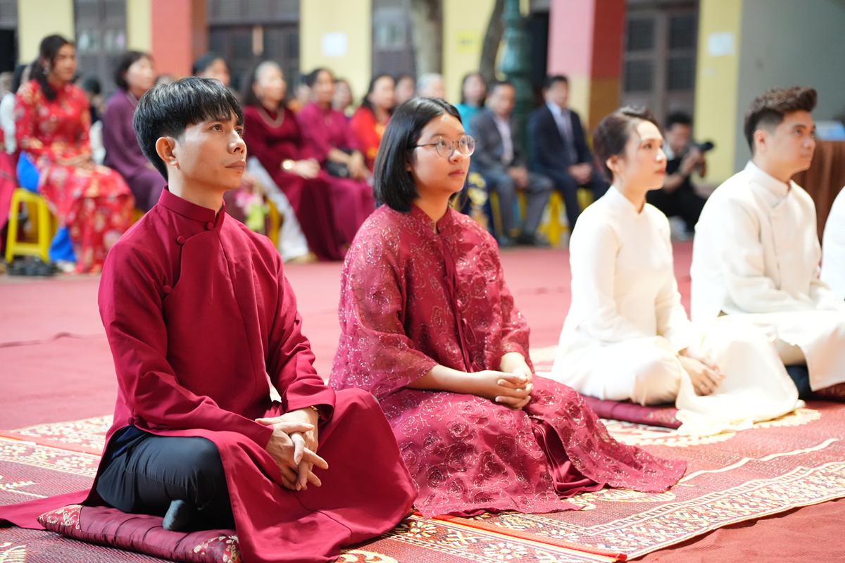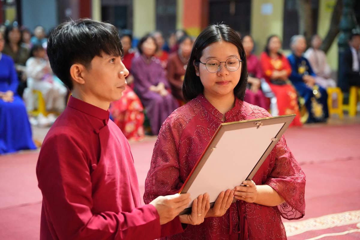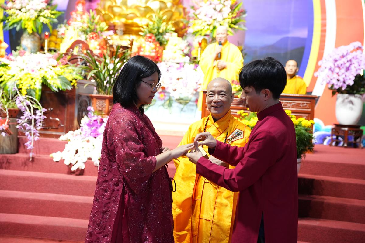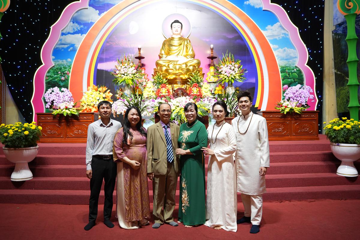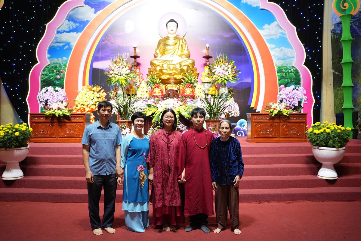 Trước Phật đài trang nghiêm, sáu đôi bạn trẻ: Bùi Huy Công – pháp danh Minh Thành và Phan Minh Hằng – pháp danh Vạn Nhiên; Nguyễn Duy Hùng – Pháp danh Minh Đại và Phan Ánh Ngọc – pháp danh Diệu Bảo; Vũ Đặng Minh Anh – Pháp danh Minh Trí và Ngô Thuỳ Dương – Pháp danh Diệu Tuệ; Lê Anh Tuyên – Pháp danh Minh Khánh và Lưu Hồng Hoa – Pháp danh Diệu Đức; Lê Quốc Phong – Pháp danh Minh Thanh và Trần Thị Huệ Phương – Pháp danh Diệu Hương; Nguyễn Quý Vinh – Pháp danh Trí Vinh và Nguyễn Thị Nhi – Pháp danh Tịnh Nhi đã nên duyên vợ chồng.