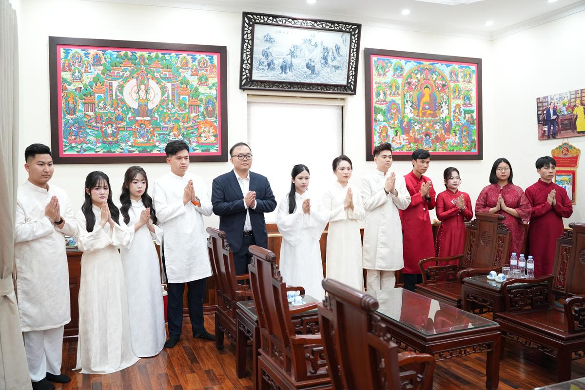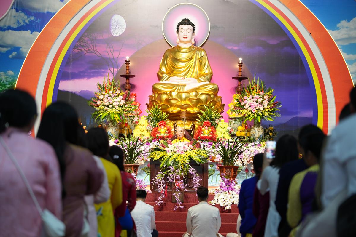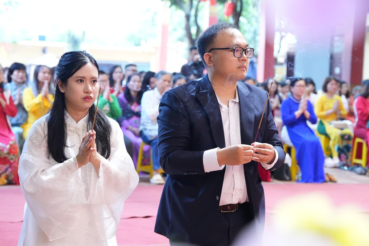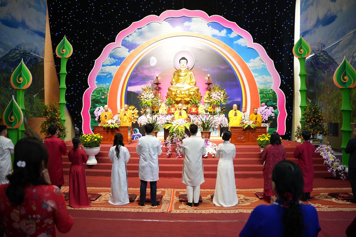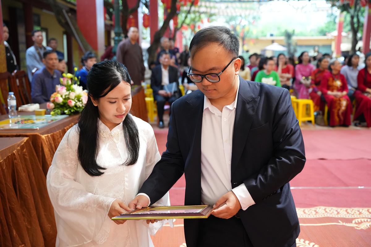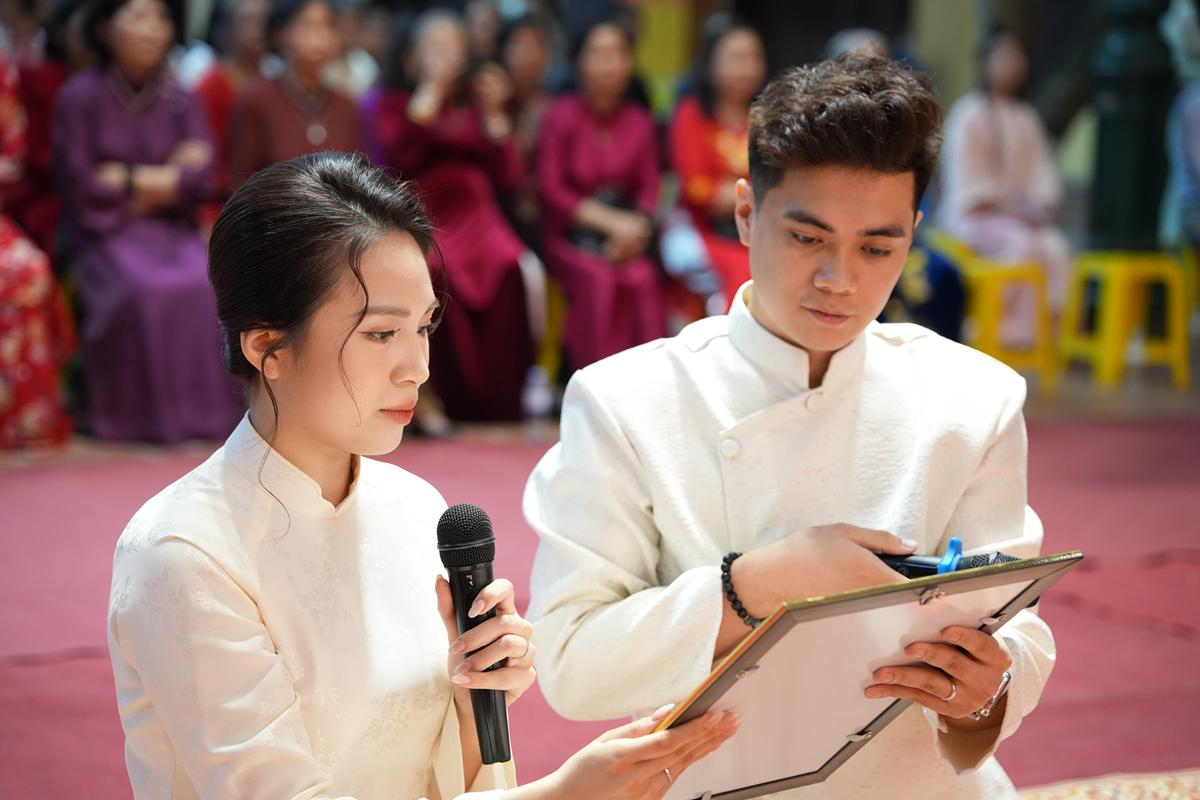 Trước Phật đài trang nghiêm, sáu đôi bạn trẻ: Bùi Huy Công – pháp danh Minh Thành và Phan Minh Hằng – pháp danh Vạn Nhiên; Nguyễn Duy Hùng – Pháp danh Minh Đại và Phan Ánh Ngọc – pháp danh Diệu Bảo; Vũ Đặng Minh Anh – Pháp danh Minh Trí và Ngô Thuỳ Dương – Pháp danh Diệu Tuệ; Lê Anh Tuyên – Pháp danh Minh Khánh và Lưu Hồng Hoa – Pháp danh Diệu Đức; Lê Quốc Phong – Pháp danh Minh Thanh và Trần Thị Huệ Phương – Pháp danh Diệu Hương; Nguyễn Quý Vinh – Pháp danh Trí Vinh và Nguyễn Thị Nhi – Pháp danh Tịnh Nhi đã nên duyên vợ chồng.