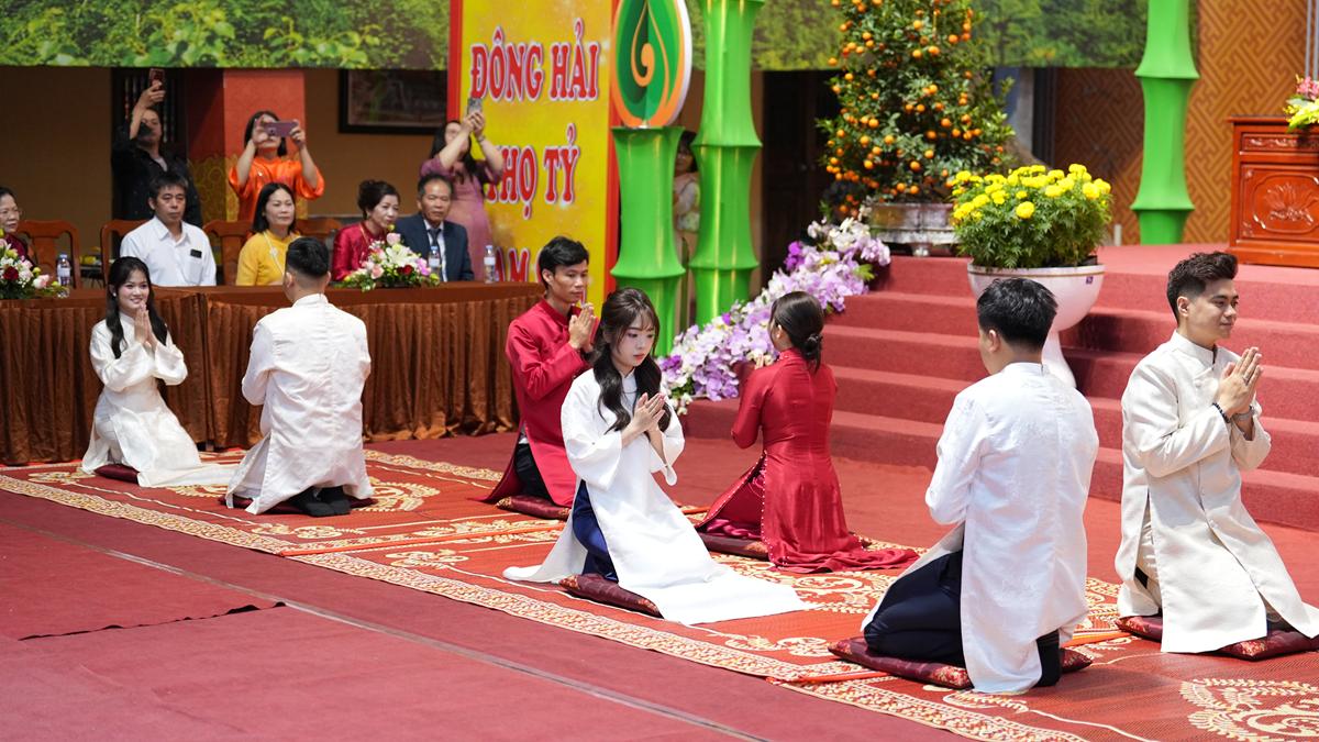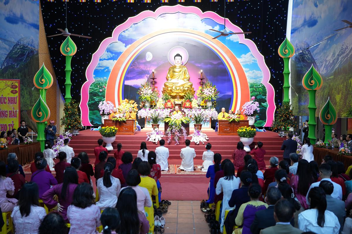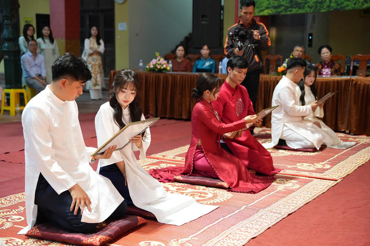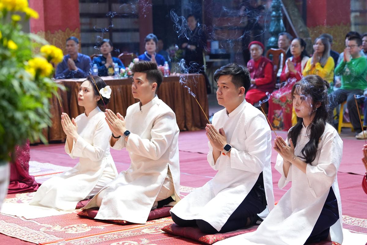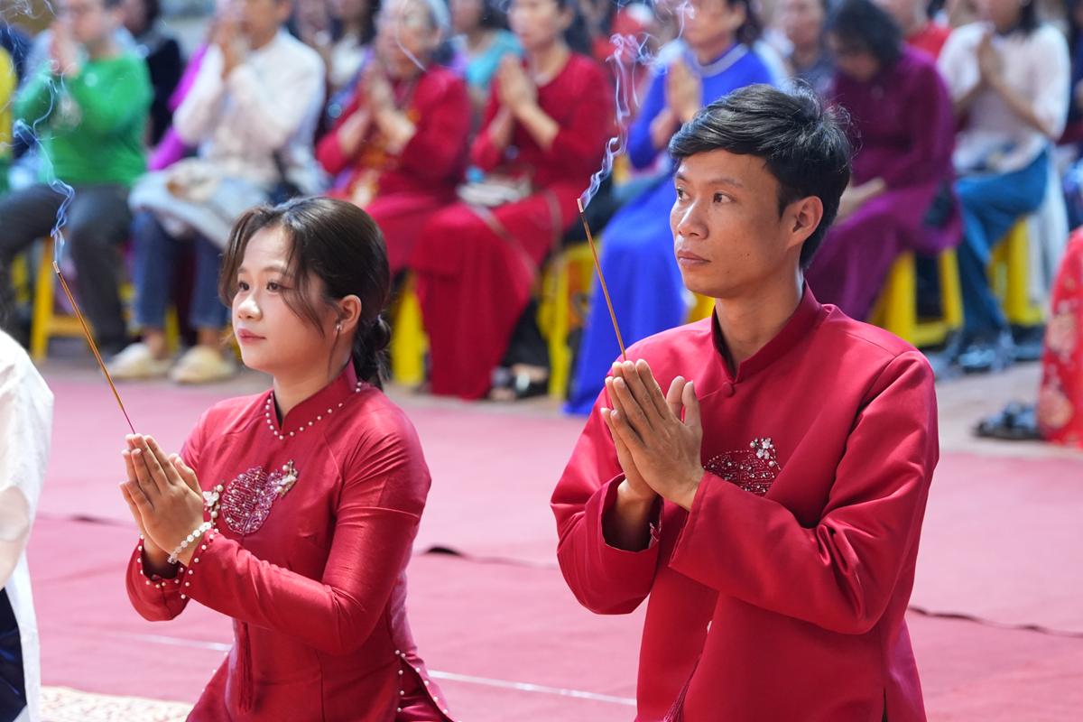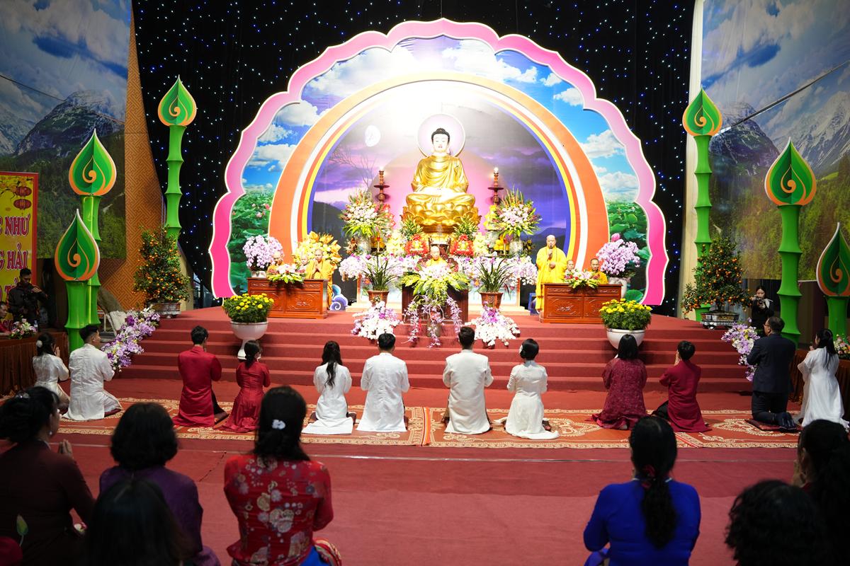 Trước Phật đài trang nghiêm, sáu đôi bạn trẻ: Bùi Huy Công – pháp danh Minh Thành và Phan Minh Hằng – pháp danh Vạn Nhiên; Nguyễn Duy Hùng – Pháp danh Minh Đại và Phan Ánh Ngọc – pháp danh Diệu Bảo; Vũ Đặng Minh Anh – Pháp danh Minh Trí và Ngô Thuỳ Dương – Pháp danh Diệu Tuệ; Lê Anh Tuyên – Pháp danh Minh Khánh và Lưu Hồng Hoa – Pháp danh Diệu Đức; Lê Quốc Phong – Pháp danh Minh Thanh và Trần Thị Huệ Phương – Pháp danh Diệu Hương; Nguyễn Quý Vinh – Pháp danh Trí Vinh và Nguyễn Thị Nhi – Pháp danh Tịnh Nhi đã nên duyên vợ chồng.
