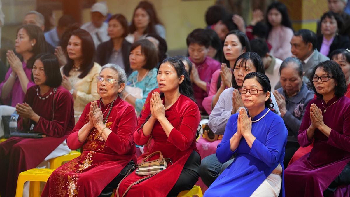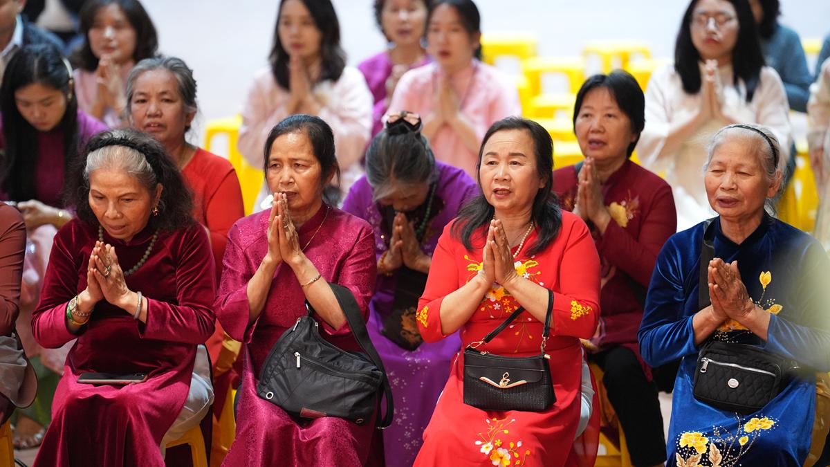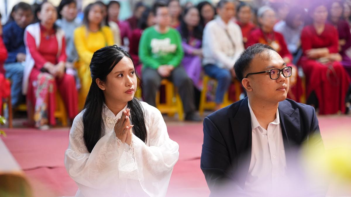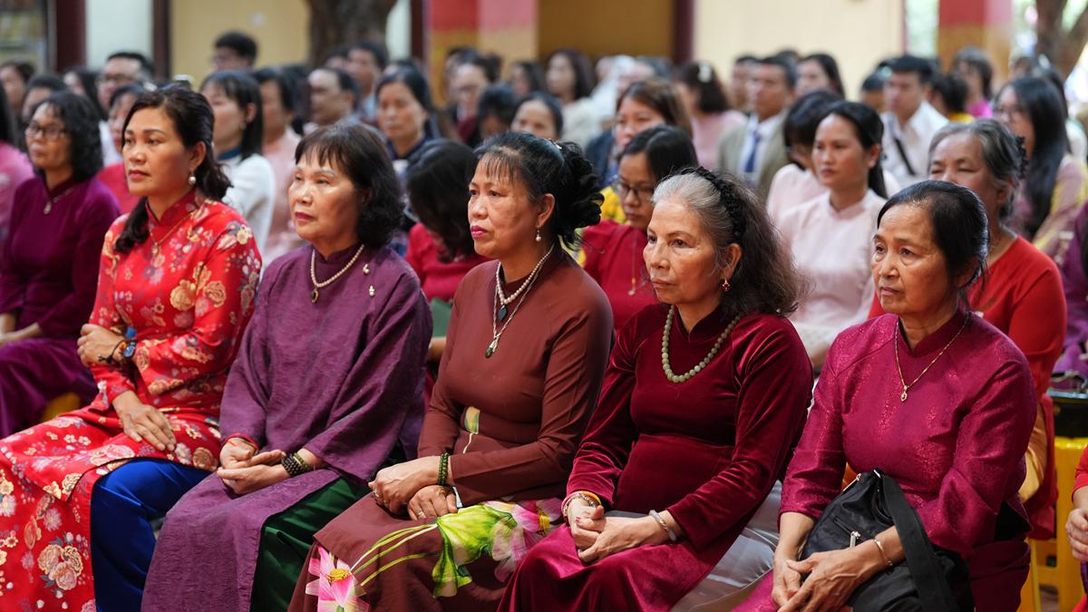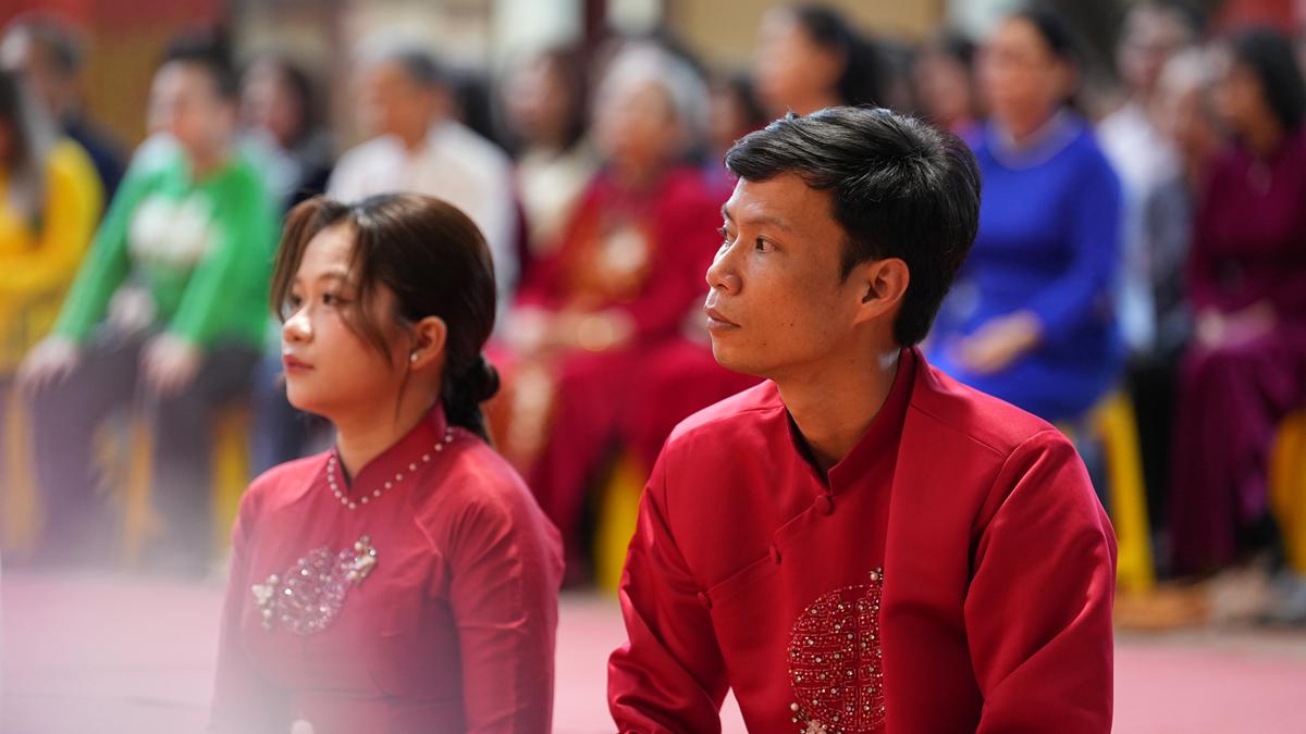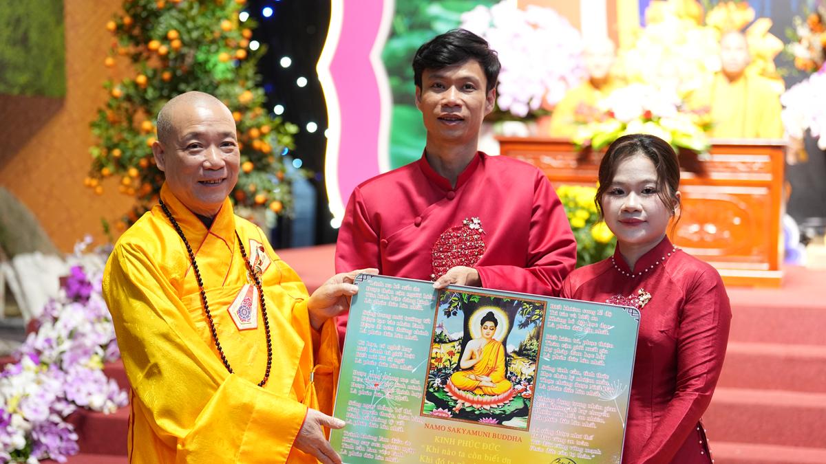 Trong không gian thiêng liêng của chốn già lam, các đôi tân lang – tân nương đã trao nhẫn cưới cho nhau trước sự chứng minh của chư tôn đức, thành kính lễ tạ Tam Bảo, tri ân song thân và phát nguyện đồng hành trong đời sống hôn nhân với tinh thần yêu thương, tôn trọng, bình đẳng và sẻ chia.