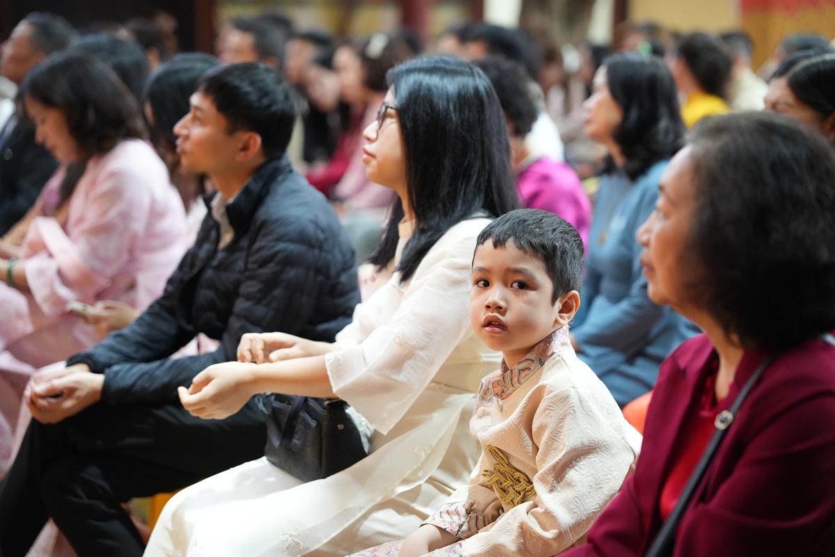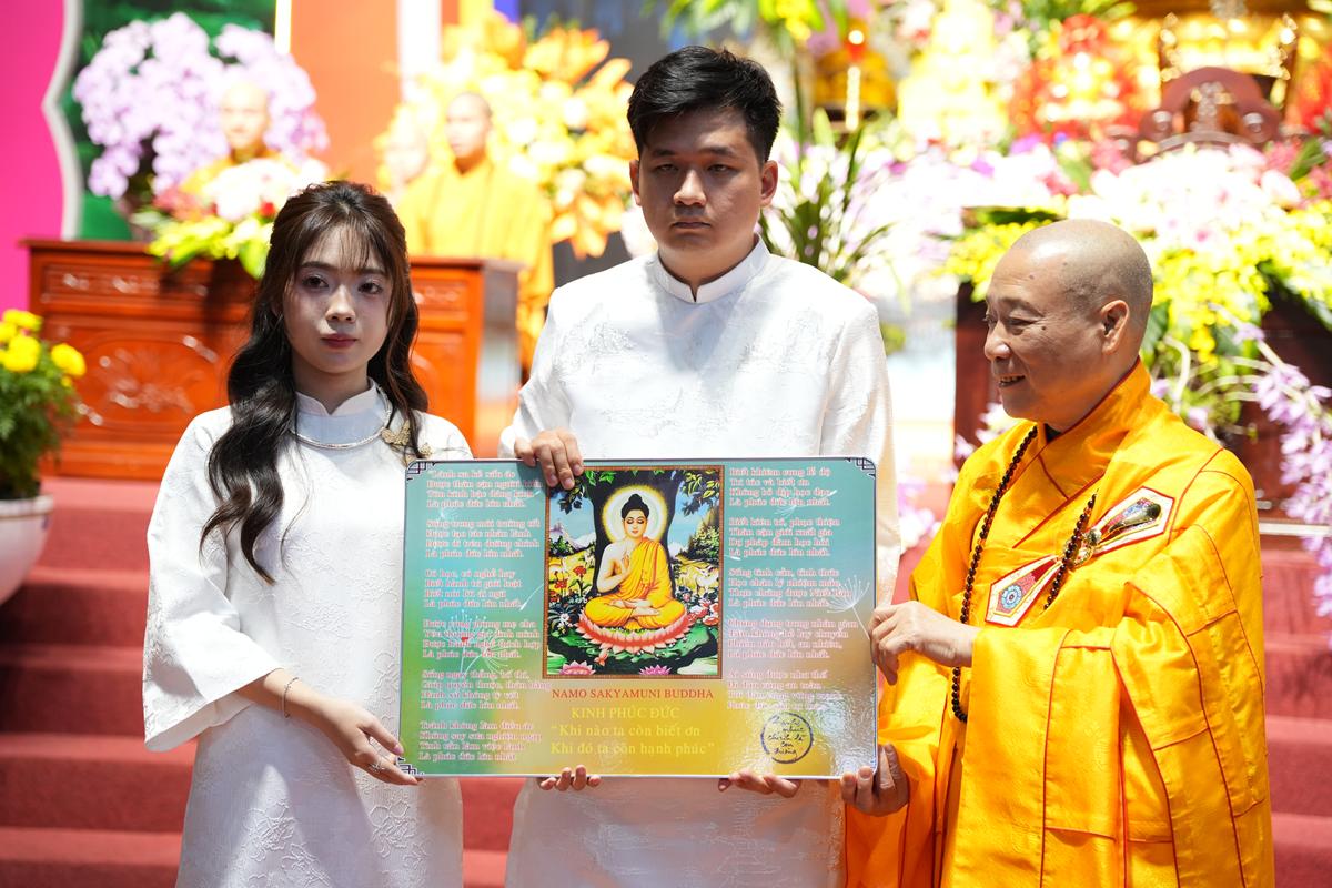 Đặc biệt, buổi lễ được tổ chức ngay sau nghi thức mừng thọ các bậc trưởng thượng trong gia đình và cộng đồng Phật tử. Hòa thượng nhấn mạnh rằng đây là một nhân duyên rất đẹp, bởi nơi đây vừa hội tụ phúc thọ của các bậc cao niên – những người đã tích tụ phúc đức qua năm tháng, vừa chứng kiến sự khởi đầu của thế hệ trẻ bước vào đời sống hôn nhân.
