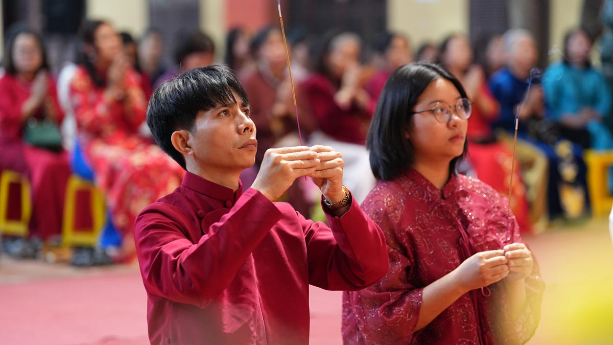 Trong không khí thanh tân của mùa xuân năm mới, chiều ngày 14/3/2026 (tức 26 tháng Giêng năm Bính Ngọ), tại Chùa Bằng – Linh Tiên Tự (phường Hoàng Liệt, Hà Nội), sáu đôi bạn trẻ cùng hai bên gia đình đã trang nghiêm vân tập về chốn già lam để cử hành lễ Hằng thuận – nghi thức hôn lễ mang đậm tinh thần đạo Phật.