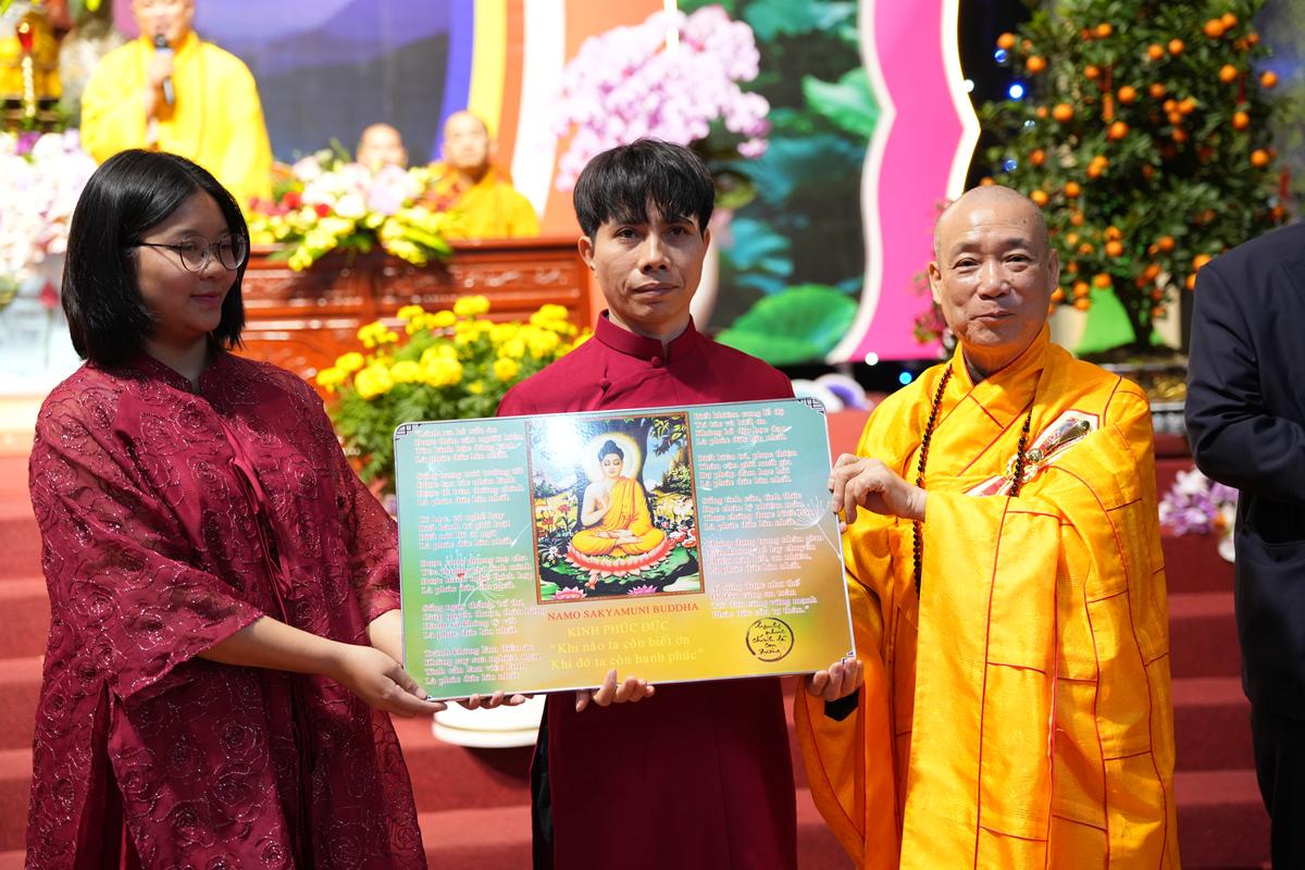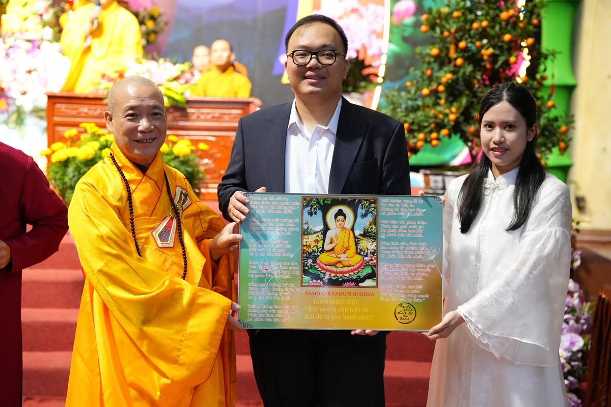 Từ ý nghĩa ấy, Hòa thượng nhắc đến “thiên tước thọ” – phúc lành quý báu trong đời người. Trước hết là phúc duyên được sinh ra làm người trong một gia đình có nền tảng đạo đức, được lớn lên trong tình thương của cha mẹ. Sự hiện diện của ông bà, cha mẹ và họ hàng hai bên trong buổi lễ chính là nguồn phúc lành và điểm tựa tinh thần để con cháu tiếp nối, xây dựng cuộc sống an hòa, hạnh phúc… Hòa thượng cũng bày tỏ lời tri ân đến các gia đình đã tin tưởng lựa chọn chùa Bằng làm nơi gửi gắm đời sống tâm linh, đồng thời hướng dẫn các đôi bạn trẻ khởi đầu đời sống hôn nhân bằng nền tảng đạo nghĩa, để cùng nhau vun đắp mái ấm bền vững, trọn nghĩa phu thê trên con đường “bách niên giai lão”.