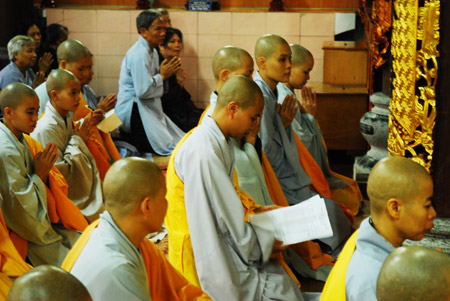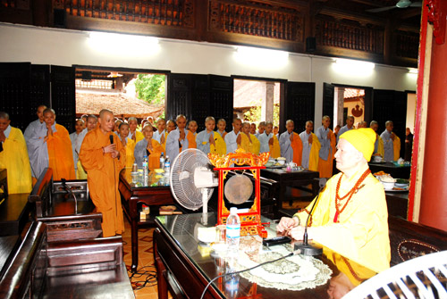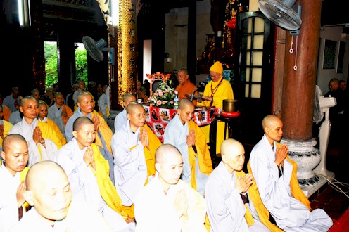 Đàn giới đã cung thỉnh HT Thích Thanh Tứ – Phó chủ tịch thường trực HĐTS GHPGVN truyền thụ Bồ Tát giới cho 73 vị Ni xuất gia của hai trường hạ Ni Văn Điển và Hoàng Mai. TT. Thích Bảo Nghiêm – Phó BTS THPG Hà Nội phụ đàn cho Hoà Thượng.Có 53 vị tại gia cùng thụ giới.