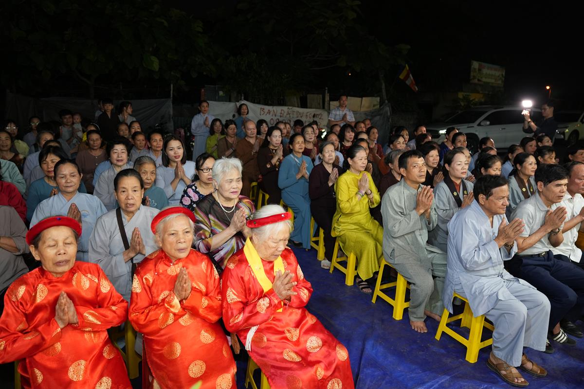 Sau đó, ông Nguyễn Đình Tuất – Nguyên Bí thư Chi bộ khu dân cư Bằng A cũng có đôi lời phát biểu tri ân đến Hòa thượng trụ trì cùng chư Tăng chùa Bằng. Ông xúc động ôn lại những ngày đầu khi Hòa thượng về trụ trì chùa Bằng cho tới ngày hôm nay, đời sống tâm linh của người dân trong khu dân cư đã dần được cải thiện một cách rõ rệt, điều đó được thể hiện qua việc người dân ra chùa lễ Phật nhiều hơn, mọi công việc tâm linh của làng đều thỉnh đến chư Tăng, trong buổi lễ rước Phật quanh làng, nhà nào cũng thiết lập ban thờ trước cửa, chắp tay cung kính đỉnh lễ…. Nhờ ân đức ấy mà khu dân cư Bằng Liệt ngày càng phát triển. Bên cạnh đó, ông cũng gửi lời đến toàn thể người dân Bằng Liệt, ra sức hộ trì Tam Bảo, hộ trì cho Hòa thượng, để mái chùa Bằng trở thành 1 trong 3 điểm tâm linh không thể tách rời của người dân Bằng Liệt đó là Đình – Chùa – Miếu.