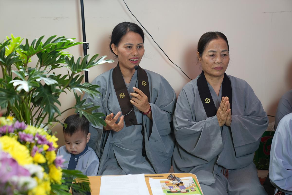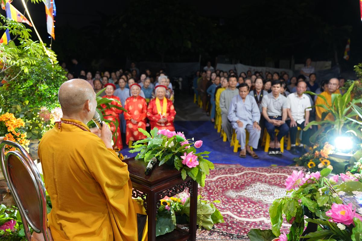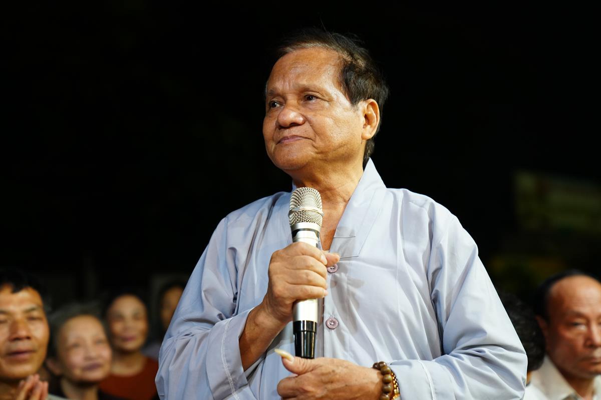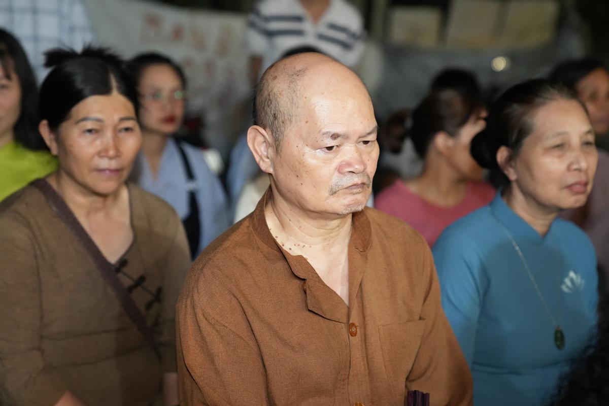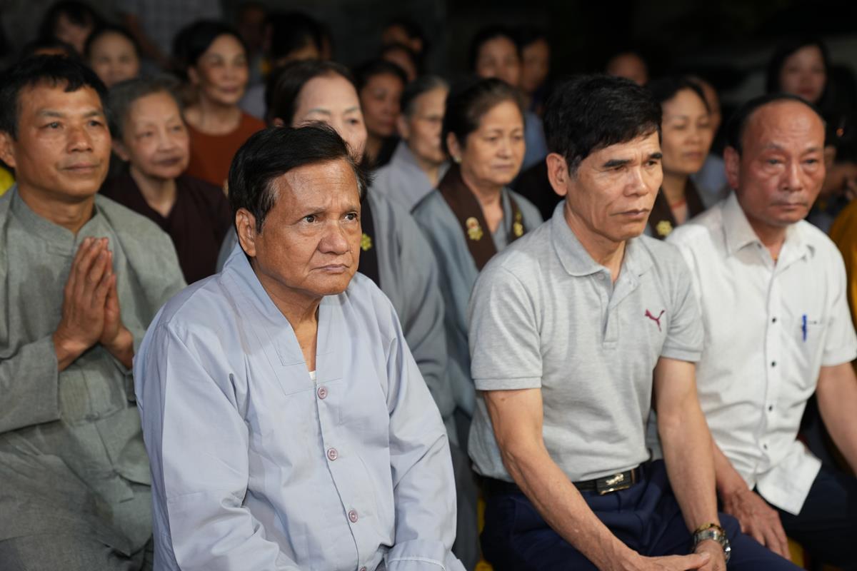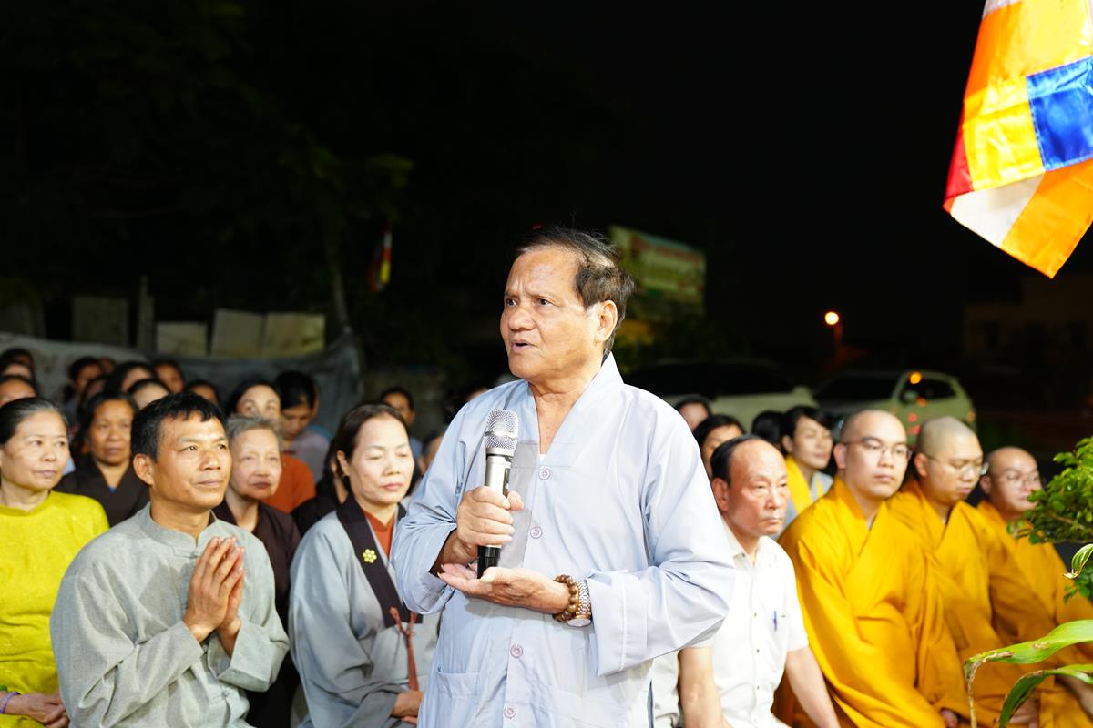 Sau đó, ông Nguyễn Đình Tuất – Nguyên Bí thư Chi bộ khu dân cư Bằng A cũng có đôi lời phát biểu tri ân đến Hòa thượng trụ trì cùng chư Tăng chùa Bằng. Ông xúc động ôn lại những ngày đầu khi Hòa thượng về trụ trì chùa Bằng cho tới ngày hôm nay, đời sống tâm linh của người dân trong khu dân cư đã dần được cải thiện một cách rõ rệt, điều đó được thể hiện qua việc người dân ra chùa lễ Phật nhiều hơn, mọi công việc tâm linh của làng đều thỉnh đến chư Tăng, trong buổi lễ rước Phật quanh làng, nhà nào cũng thiết lập ban thờ trước cửa, chắp tay cung kính đỉnh lễ…. Nhờ ân đức ấy mà khu dân cư Bằng Liệt ngày càng phát triển. Bên cạnh đó, ông cũng gửi lời đến toàn thể người dân Bằng Liệt, ra sức hộ trì Tam Bảo, hộ trì cho Hòa thượng, để mái chùa Bằng trở thành 1 trong 3 điểm tâm linh không thể tách rời của người dân Bằng Liệt đó là Đình – Chùa – Miếu.