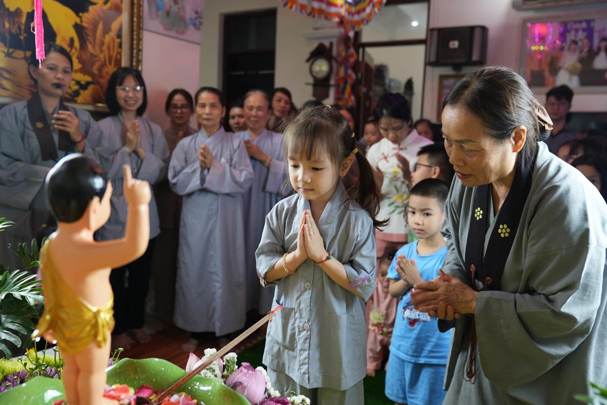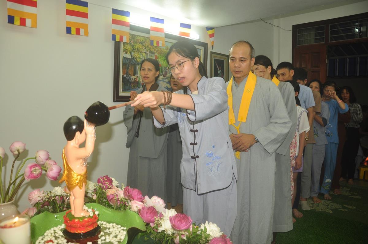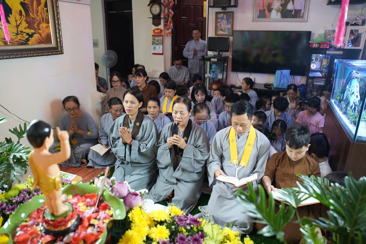 Cũng trong tuần lễ Phật đản từ ngày 7/4 đến ngày Rằm/4 âm lịch, các gia đình Phật tử thuộc Đạo tràng Pháp Hoa chùa Bằng cũng đồng loạt thiết trí lễ đài tại tư gia trang nghiêm và thành kính, cùng hàng xóm và họ hàng tụng kinh Chuyển Pháp Luân và tắm Phật trong niềm hân hoan kính mừng ngày Đức Đại Đạo Sư đản sinh.