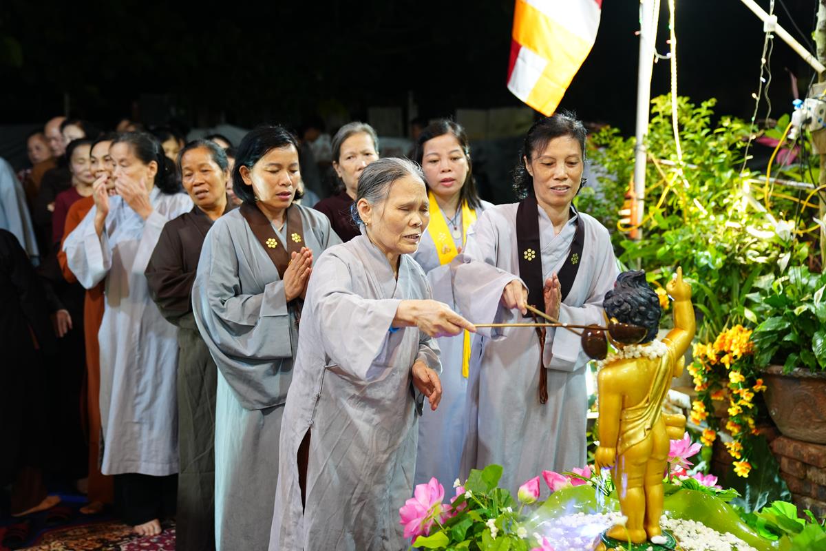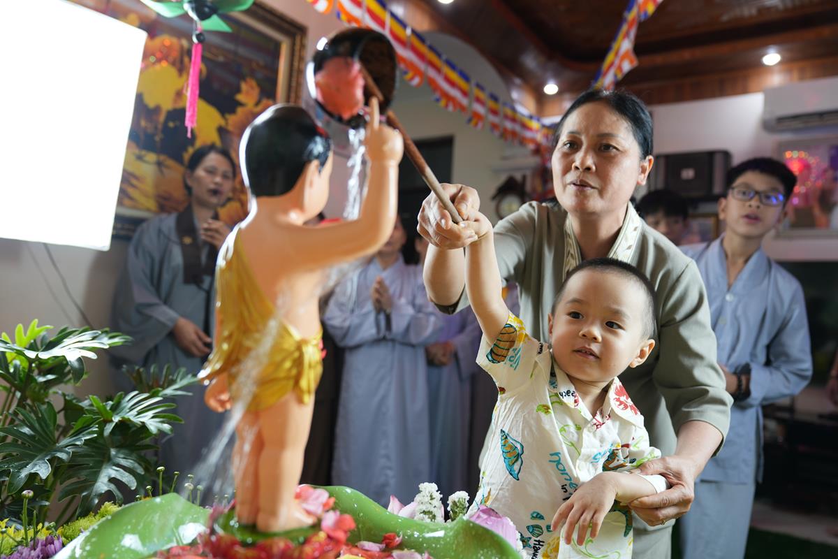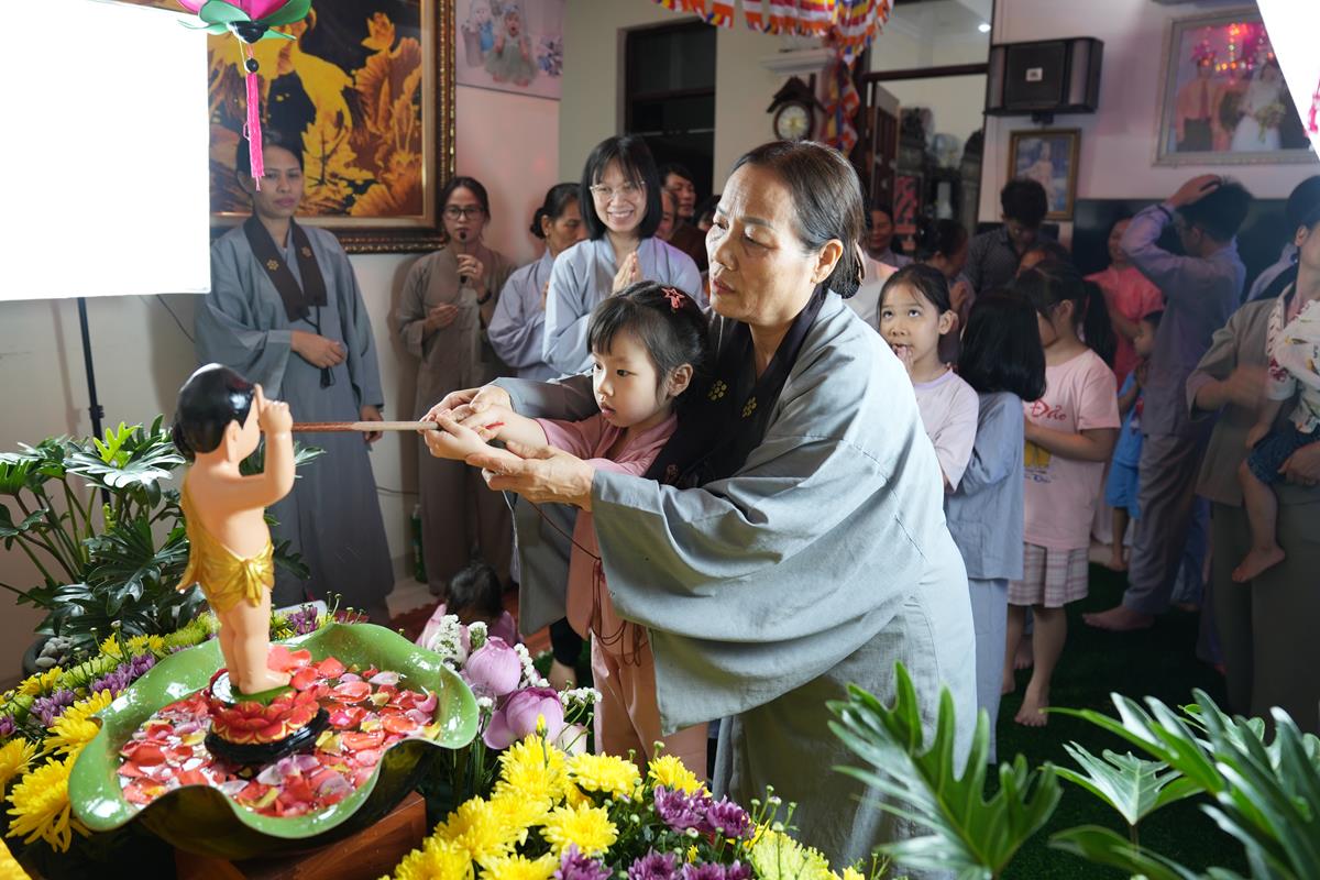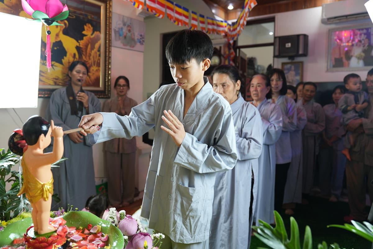 Cũng trong tuần lễ Phật đản từ ngày 7/4 đến ngày Rằm/4 âm lịch, các gia đình Phật tử thuộc Đạo tràng Pháp Hoa chùa Bằng cũng đồng loạt thiết trí lễ đài tại tư gia trang nghiêm và thành kính, cùng hàng xóm và họ hàng tụng kinh Chuyển Pháp Luân và tắm Phật trong niềm hân hoan kính mừng ngày Đức Đại Đạo Sư đản sinh.