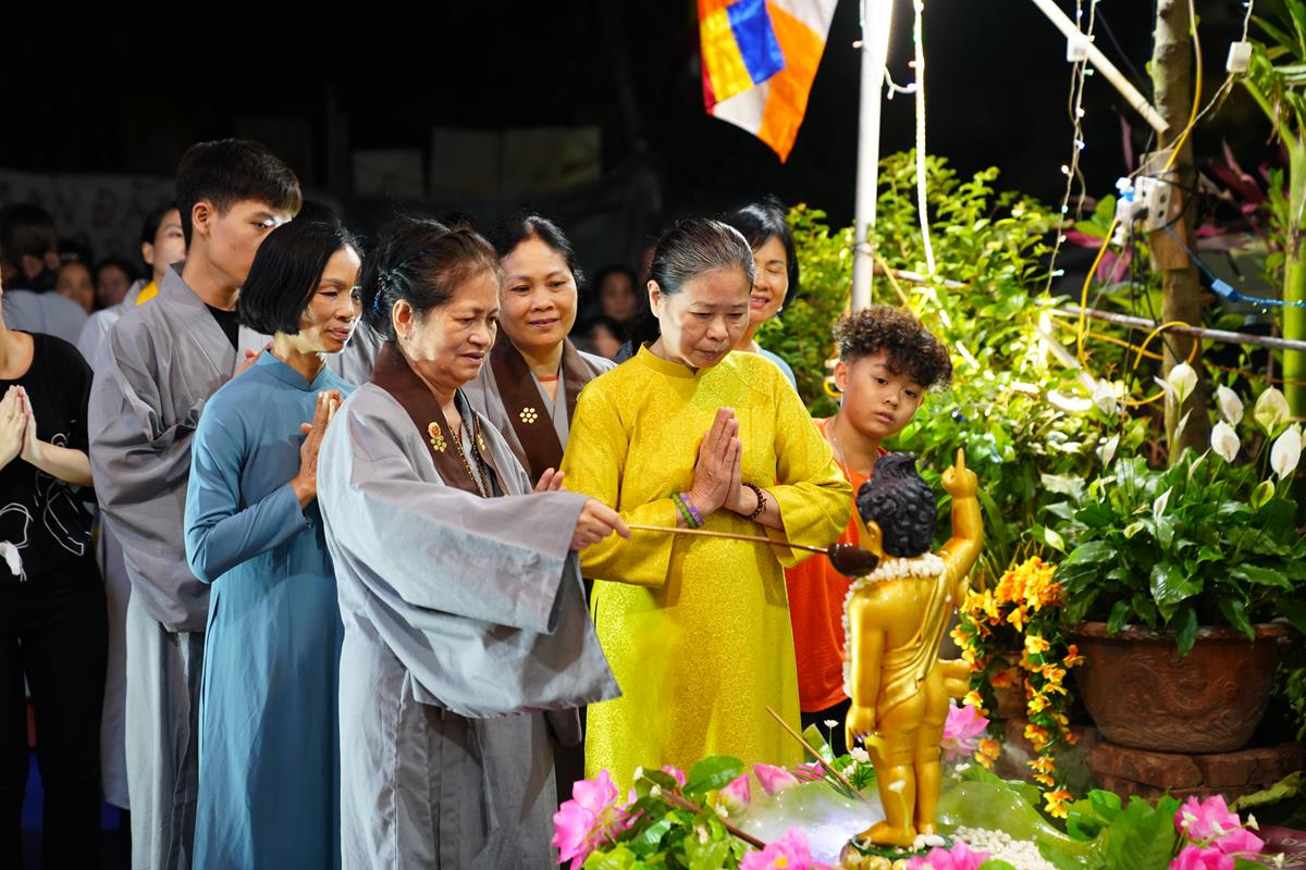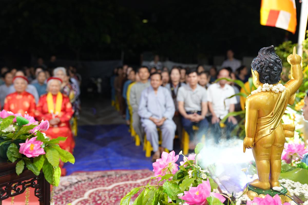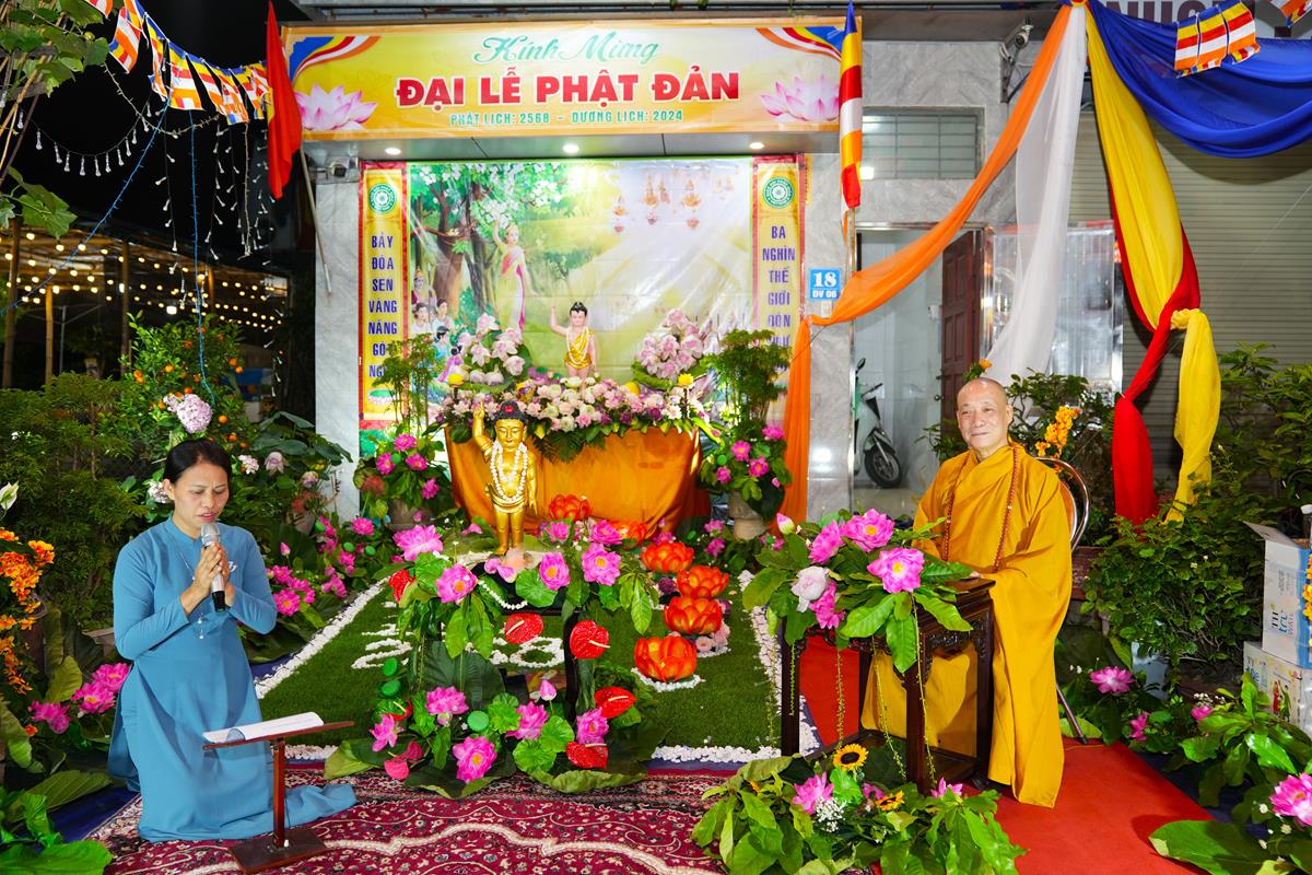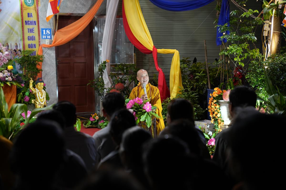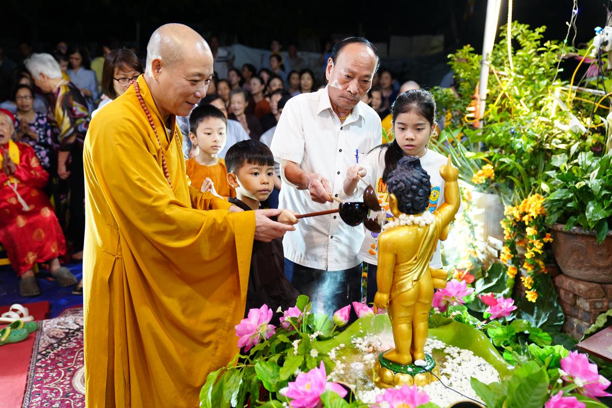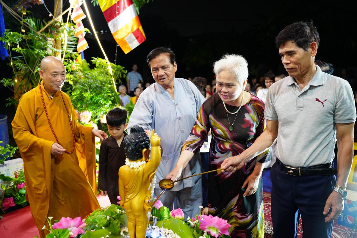 Tại buổi lễ, HT. Thích Bảo Nghiêm đã có lời tán thán đến gia đình chú Nguyễn Xuân Hùng và cô Nguyễn Thị Hạnh. Mặc dù Hà Nội đất chật, người đông, thế nhưng bằng tấm lòng thành kính với Đức Phật và bằng sự yêu thương, mong muốn lan tỏa Phật Pháp đến với người dân xung quanh, gia đình đã thiết lập lễ đài kính mừng Phật đản. Lễ đài tuy không rộng lớn nhưng vẫn hết sức trang nghiêm và thành kính, điều đó đã phần nào thể hiện được tấm lòng của những người con Phật dâng lên Đấng Từ Phụ nhân ngày sinh của Ngài.