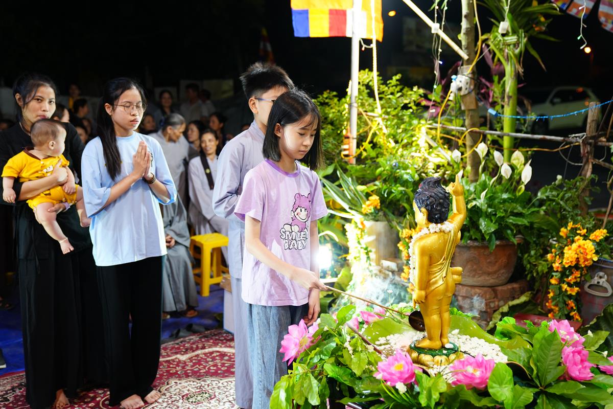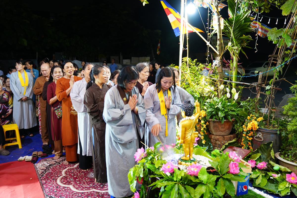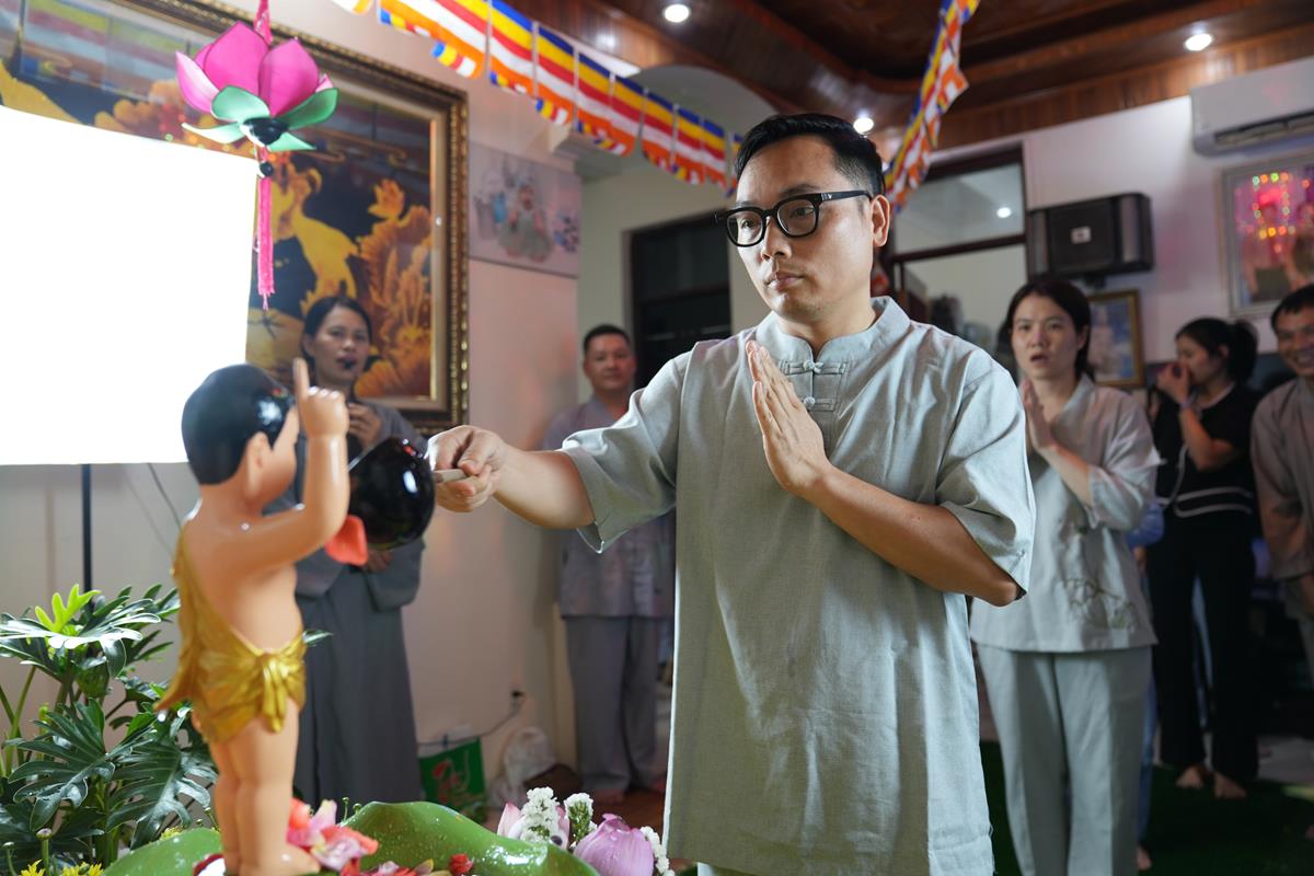 Hàng năm, mỗi khi đến mùa Phật Đản, người dân sẽ nô nức ra chùa, lễ Phật, tụng kinh và thực hiện nghi thức tắm Phật. Tuy nhiên, có những người dân mải lo cuộc sống với những bộn bề thường nhật mà không thu xếp được thời gian trở về nương tựa tâm linh. Chính vì vậy, nhằm để kết nối Chùa với người dân Bằng Liệt, quan trọng hơn nữa là đem đạo Phật đến gần hơn với quần chúng nhân dân, để những người không theo Đạo Phật cũng có thể biết tới ý nghĩa của ngày Phật đản, tối ngày 17/05 vừa qua, tại Lô 18 DV 6 Tổ 2 Bằng Liệt (phường Hoàng Liệt, quận Hoàng Mai, Hà Nội), gia đình Phật tử Nguyễn Thị Hạnh pháp danh Hoa Đức đã thiết lập lễ đài, tổ chức lễ Phật Đản PL.2568 – DL.2024 cho bà con trong khu dân cư Bằng Liệt.