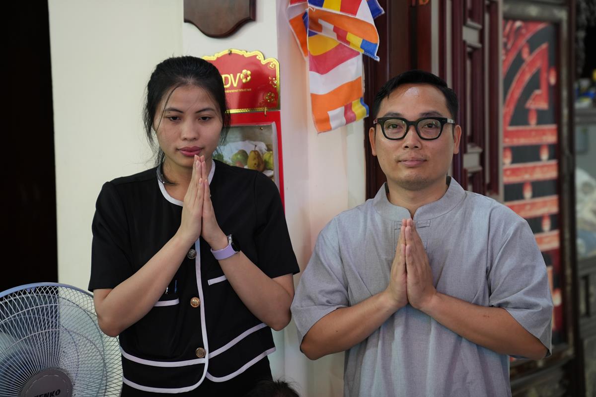 Gia đình Phật tử Lê Văn Xuyên – pháp danh Pháp Hạnh và Phật tử Nguyễn Thị Thắm – pháp danh Hoa Đạo tại ngõ 51 Thanh Liệt (huyện Thanh Trì, Hà Nội).