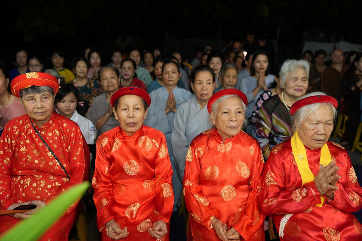 Quang lâm chứng minh buổi lễ có HT. Thích Bảo Nghiêm – Phó chủ tịch HĐTS, Trưởng Ban hoằng pháp TƯ, Trụ trì chùa Bằng, cùng chư tôn đức Tăng chùa Bằng.