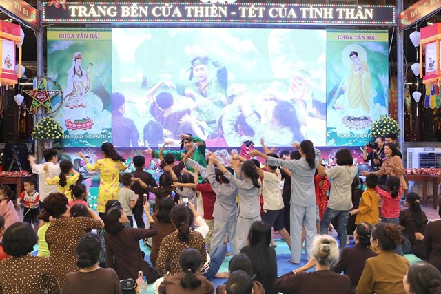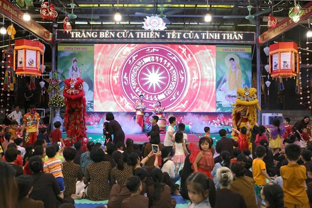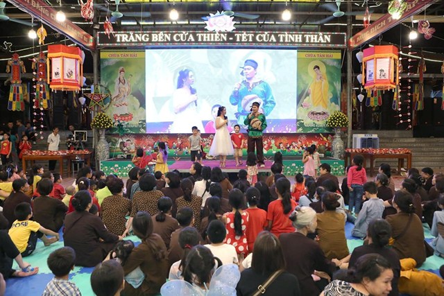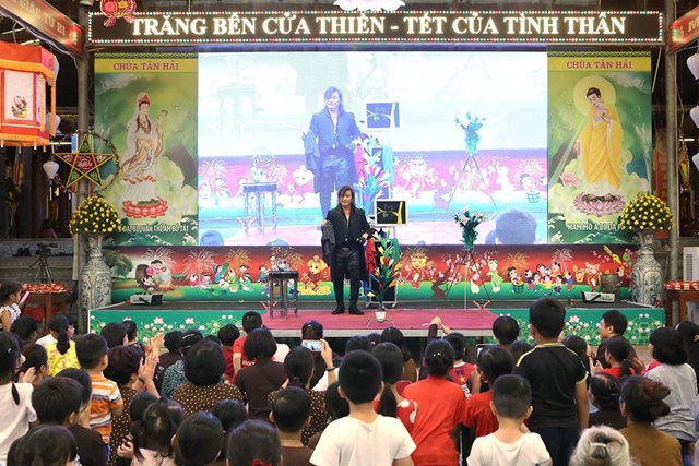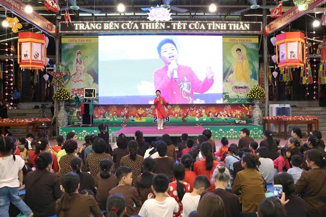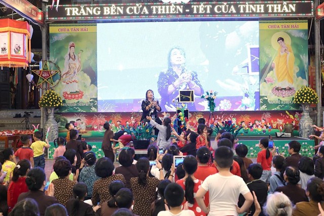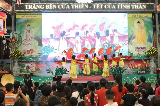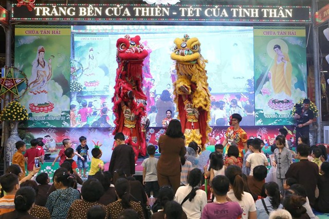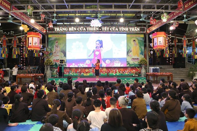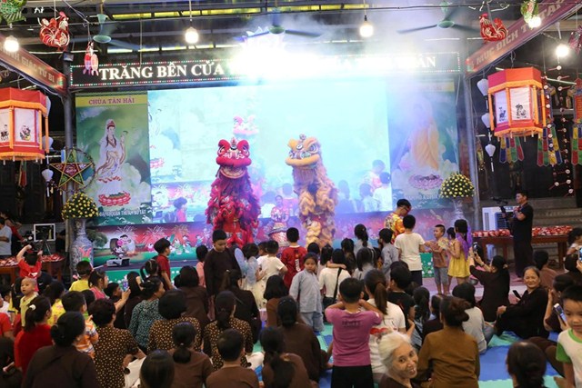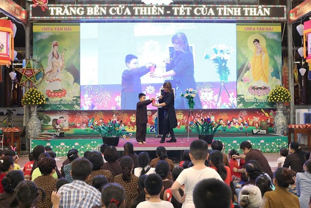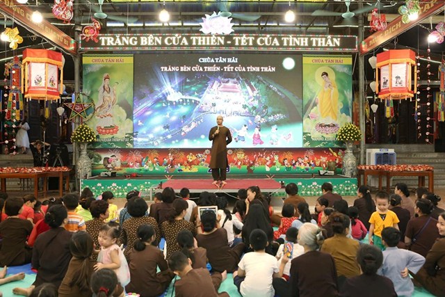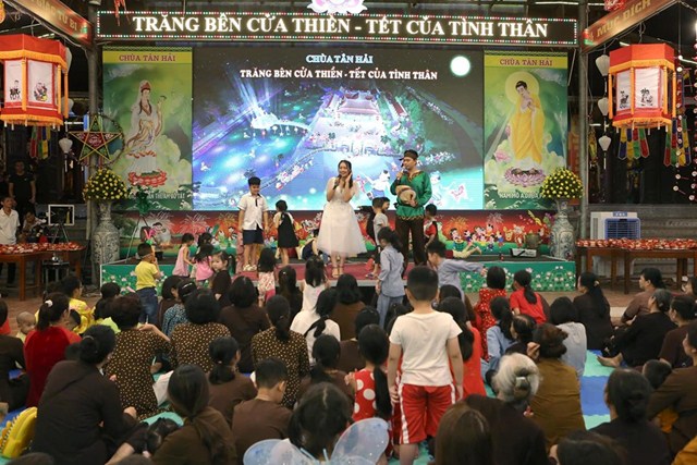 Tham dự tết trung thu tại chùa Tân Hải, các bạn nhỏ đã được xem tiết mục múa lân truyền thống đặc sắc, xiếc, ảo thuật, nghe các ca khúc về tết trung thu giao lưu cùng các bạn đồng trang lứa, các văn nghệ sỹ, giao lưu cùng chị Hằng, chú Cuội, trả lời những câu hỏi liên quan đến sự tích, ý nghĩa của tết trung thu, sự tích về chú Cuội, chị Hằng…Bên cạnh đó là những câu hỏi về kiến thức Phật Pháp căn bản, cách chào hỏi , một số uy nghi khi tới chùa sau khi các em được Đại đức Thích Quảng Hiếu – Bản tự chùa Tân Hải, trưởng Ban tổ chức chương trình chia sẻ.