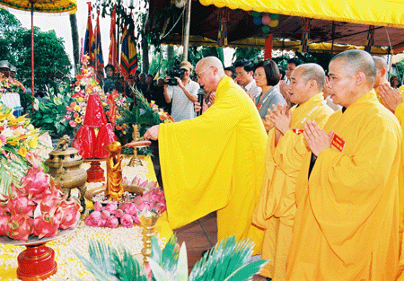TT. Thích Nguyên Hạnh đọc ý nghĩa ngày Phật đản của HT. Trưởng ban Hoằng Pháp. Sau phần Phát biểu chúc mừng của lãnh đạo UBMTTQ quận Tây Hồ , đại diện các cháu thiếu nhi Phật tử trong quận lên phát biểu chúc mừng buổi lễ là nghi lễ tắm Phật do TT. Thích Thanh Nhã làm chủ lễ cùng các tăng ni trong quận và các đại biểu lên trước lễ đài niêm hương và làm lễ tắm Phật sau đó thả chim phóng sinh cầu cho đất nước phồn vinh, thế giới hoà bình chúng sinh an lạc.