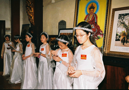 Sau khi niệm Phật cầu gia bị, các Phật tử đã biểu diễn chào mừng lễ Phật Đản với nội dung và hình thức rất phong phú. Các lãnh đạo ban ngành của thành phố Hà Nội và quận Tây Hồ trao những lẵng hoa tươi thắm chúc mừng buổi lễ .Tiếp đó tất cả đạo tràng đứng dậy trang nghiêm nghe TT. Thích Thanh Nhã đọc Thông Điệp của Ban Thường Trực HĐCMGHPGVN nhân dịp đại lễ Phật Đản PL. 2551-DL.2007. ĐĐ. Thích Minh Trí đọc Diễn văn Đại lễ Phật Đản PL. 2551 của HT Chủ tịch HĐTS GHPGVN.